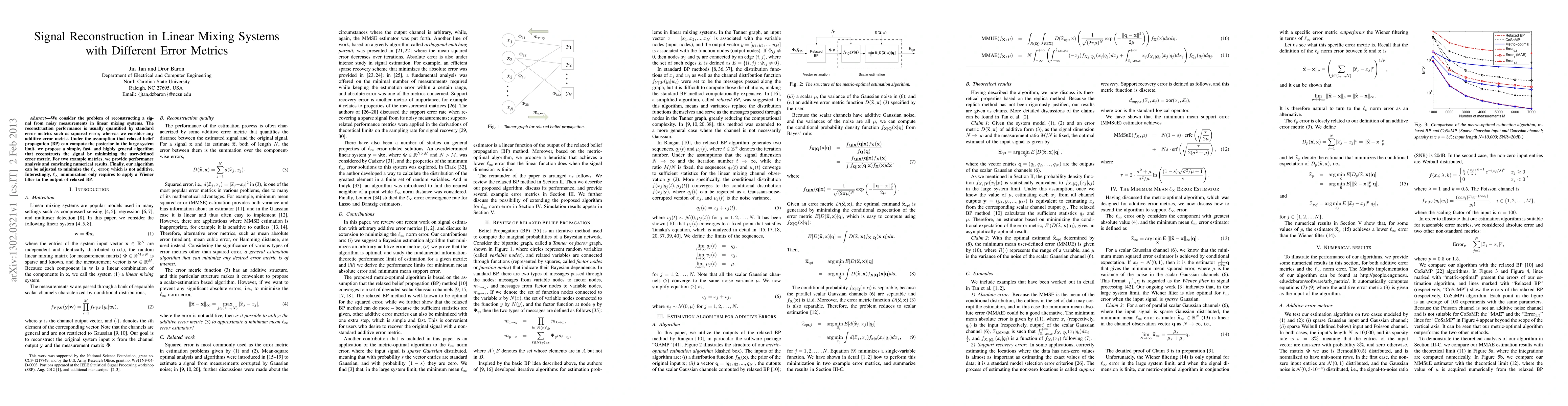 Researchers developed an algorithm to reconstruct signals in linear mixing systems with different error metrics, outperforming traditional methods that only consider squared error.
