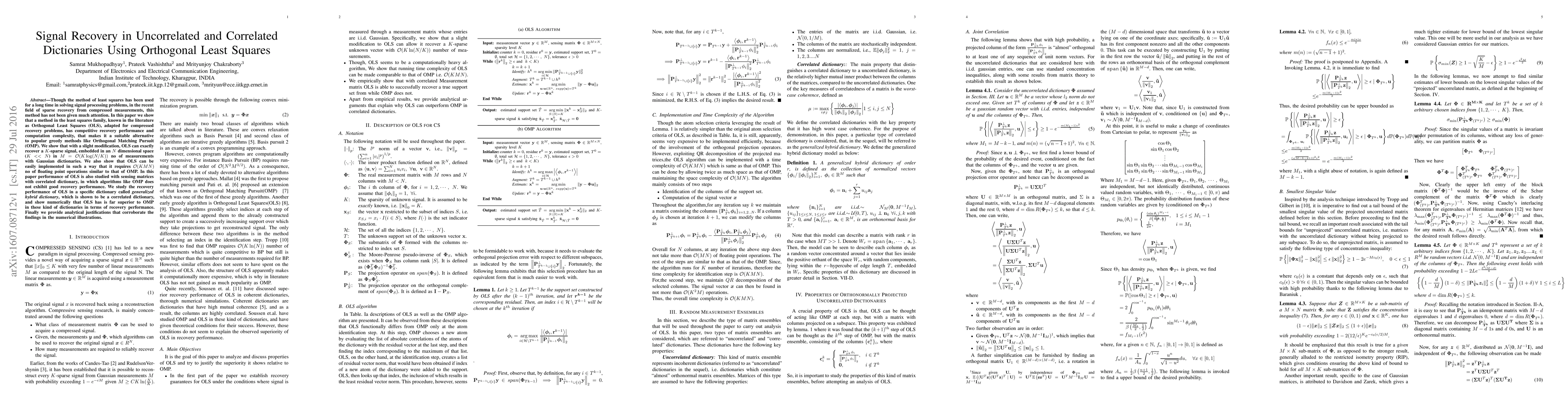 Matching Pursuit (OMP). We show that with a slight modification, OLS can