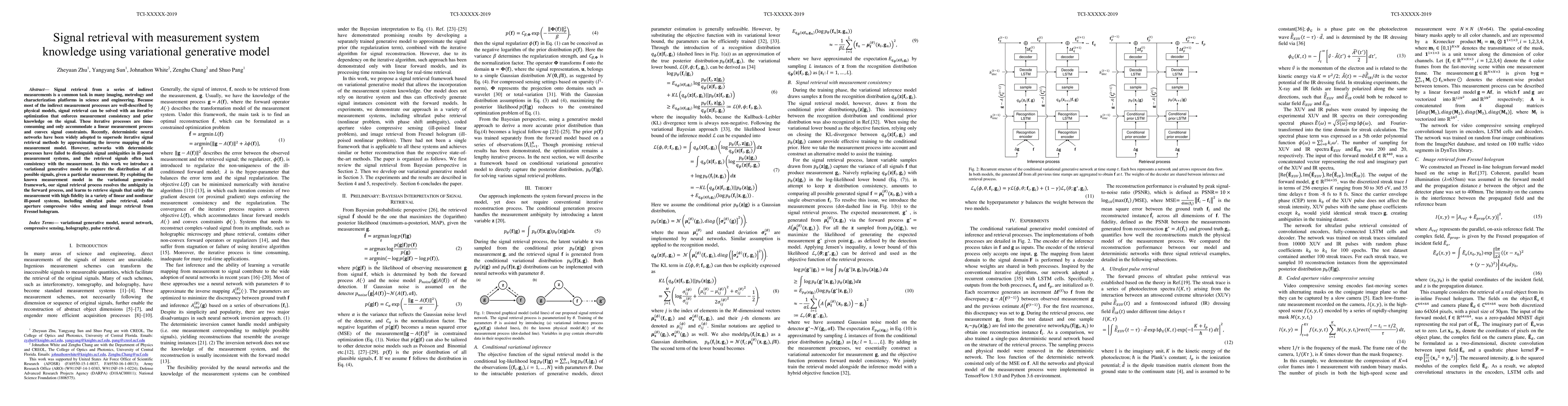 This paper proposes a variational generative model for signal retrieval from indirect measurements, leveraging known measurement system knowledge to resolve ambiguities and retrieve signals with high fidelity, surpassing traditional iterative methods and deterministic neural networks in ill-posed systems.
