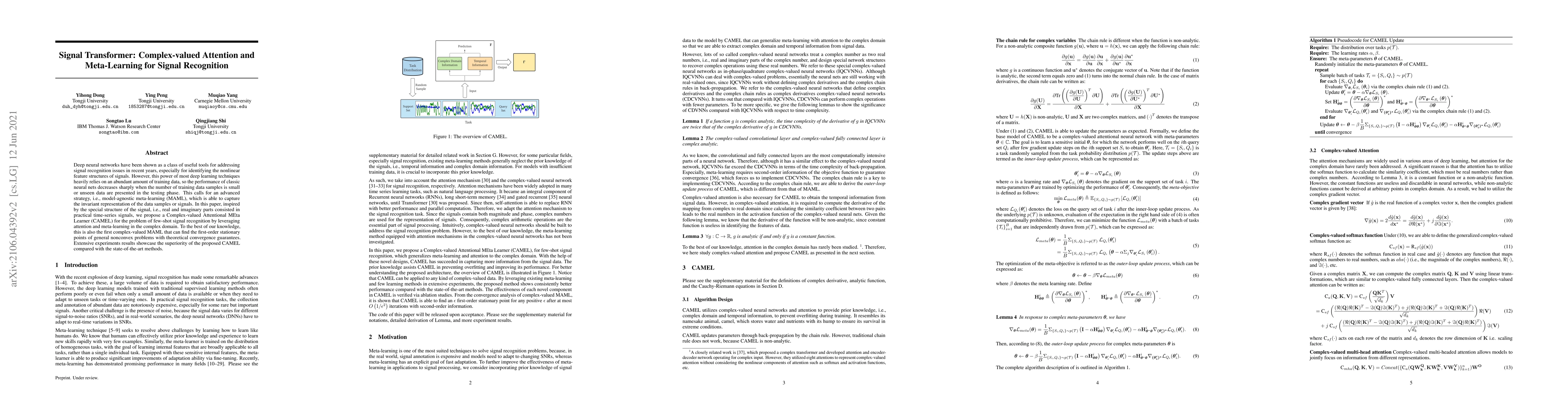 This paper proposes a Complex-valued Attentional MEta Learner (CAMEL) for few-shot signal recognition, leveraging complex-valued attention and meta-learning to address the challenge of limited training data. CAMEL is the first complex-valued model-agnostic meta-learning approach with theoretical convergence guarantees, outperforming state-of-the-art methods in experiments.