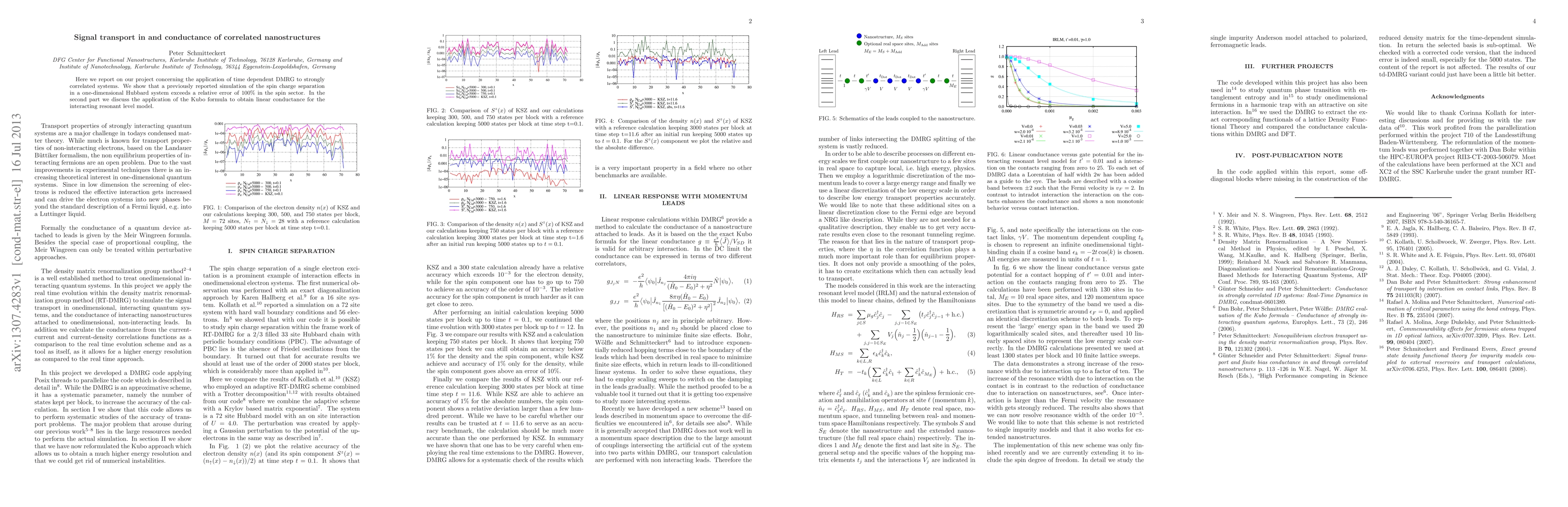 This paper discusses the application of time-dependent density matrix renormalization group (DMRG) to strongly correlated systems, highlighting significant errors in spin sector simulations. It also explores the use of the Kubo formula to determine linear conductance in the interacting resonant level model.