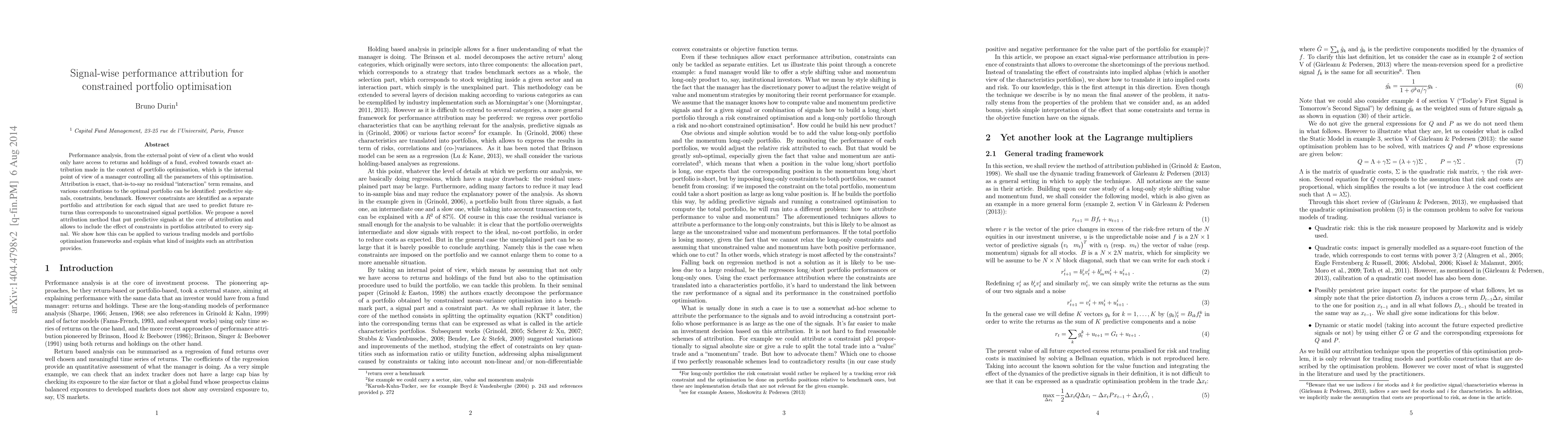 Researchers propose a novel attribution method that assigns predictive signals central role in portfolio optimization, allowing constraints to be accounted for in signal attributions. This approach provides new insights into portfolio performance.