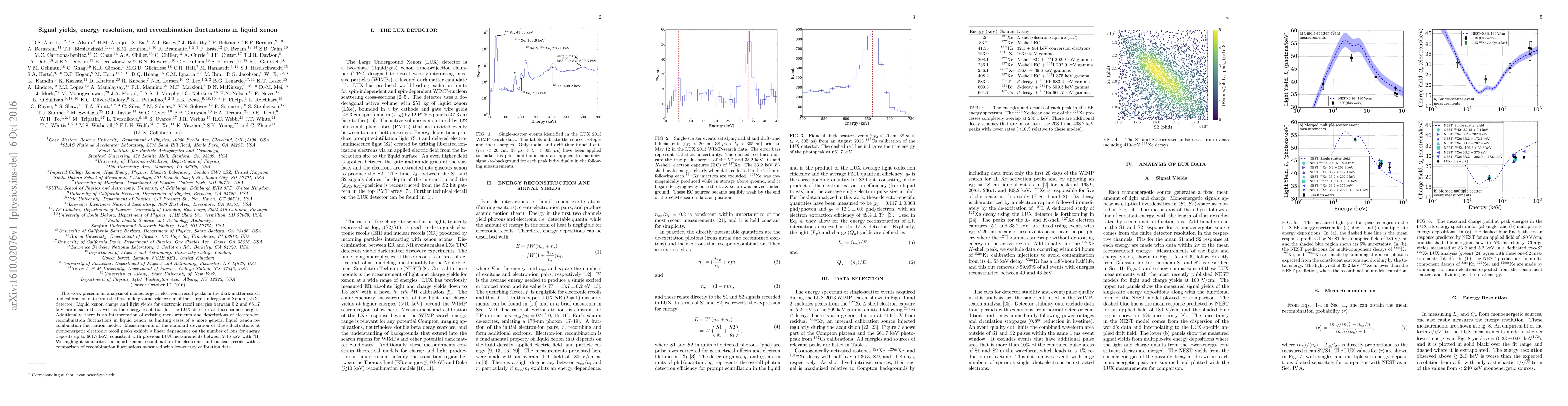 This study analyzes monoenergetic electronic recoil peaks in LUX detector data, measuring liquid xenon's charge and light yields, energy resolution, and electron-ion recombination fluctuations, finding a linear dependence on ion number for energy deposits up to 661.7 keV. It also compares recombination fluctuations for electronic and nuclear recoils.