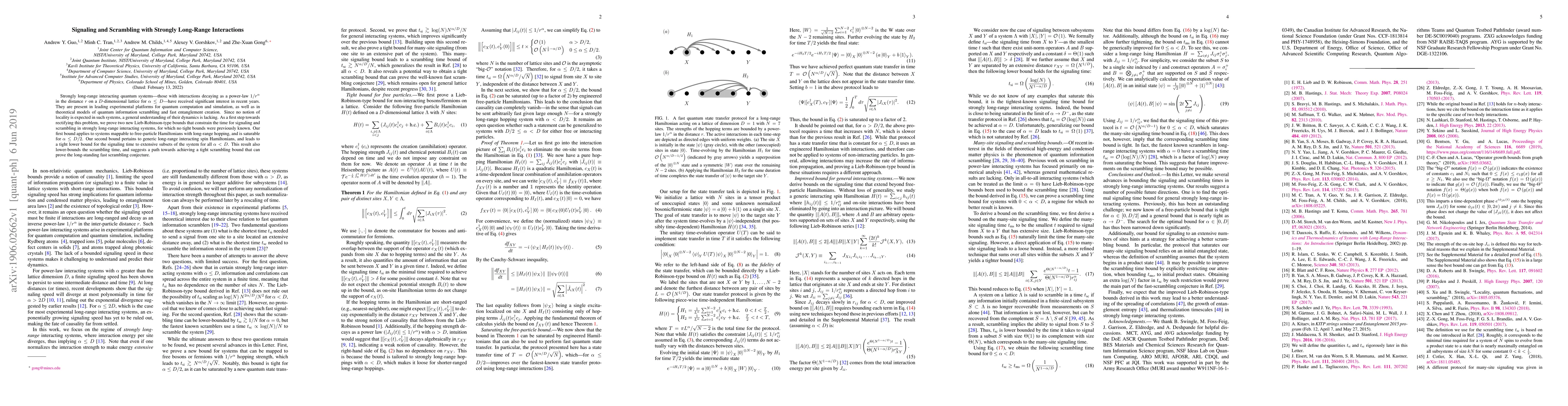 This paper establishes new Lieb-Robinson-type bounds for strongly long-range interacting quantum systems, providing constraints on signaling and scrambling times. It introduces two bounds: one for systems with long-range hopping and another for generic spin Hamiltonians, aiming to address the lack of understanding of dynamics in such systems and potentially proving the fast scrambling conjecture.