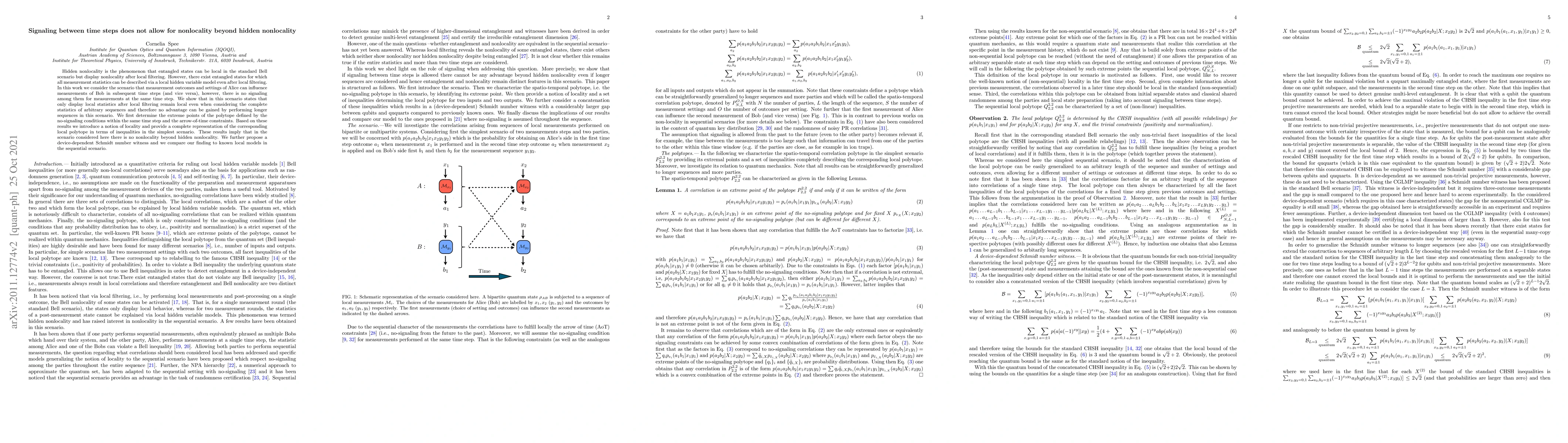 This paper demonstrates that in scenarios where measurement outcomes can influence subsequent time steps but no signaling occurs within the same time step, entangled states remain local even after local filtering. It concludes that no nonlocality beyond hidden nonlocality can be achieved, proposing a device-dependent Schmidt number witness to measure this locality.