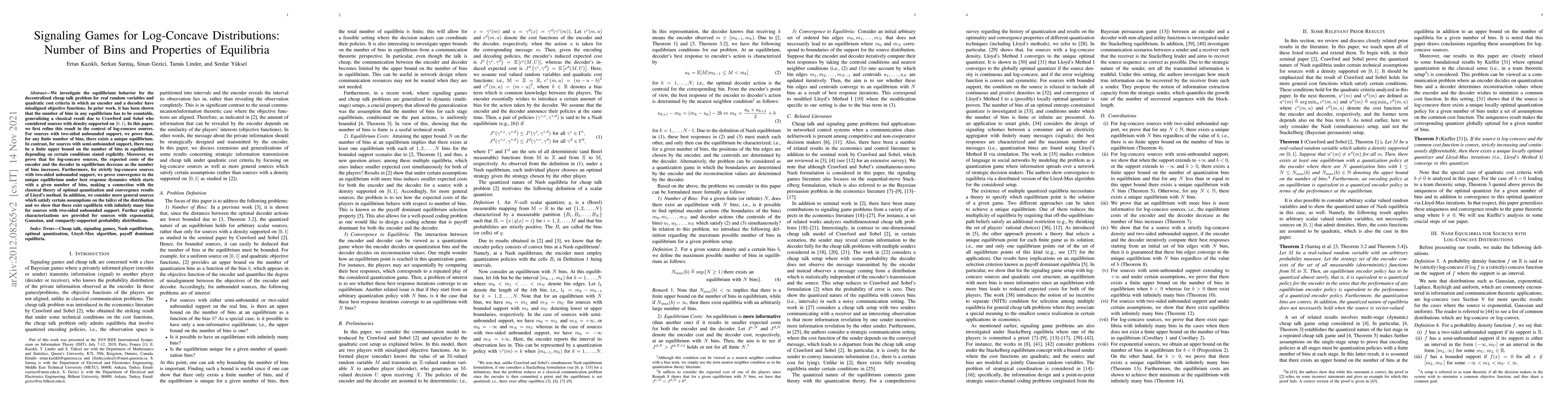 This research refines the understanding of equilibrium behavior in decentralized communication with misaligned objectives, focusing on log-concave distributions. For sources with two-sided unbounded support, it proves a unique equilibrium exists for any finite bins, contrasting with semi-unbounded sources that may have a finite bin upper bound. The study also shows decreasing expected costs for encoder and decoder as bins increase, and convergence to a unique equilibrium under best response dynamics for strictly log-concave sources with two-sided unbounded support. It extends these findings to more general sources with specific tail assumptions, identifying equilibria with infinitely many bins for two-sided unbounded support sources, with explicit characterizations for exponential, Gaussian, and compactly-supported distributions.