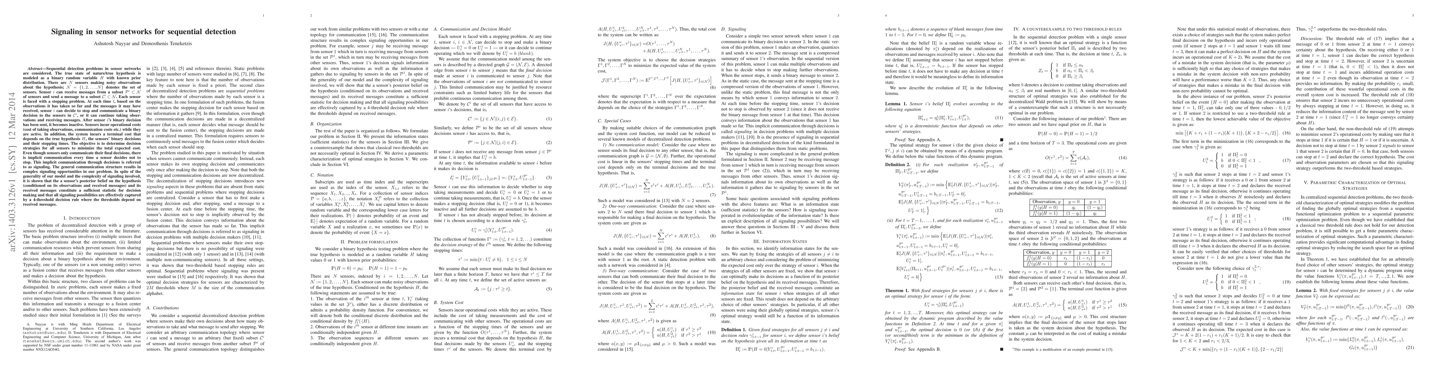 Researchers investigated strategies for sensors in a network to minimize costs while accurately detecting a true hypothesis through sequential detection, considering both sensor operation and communication costs.