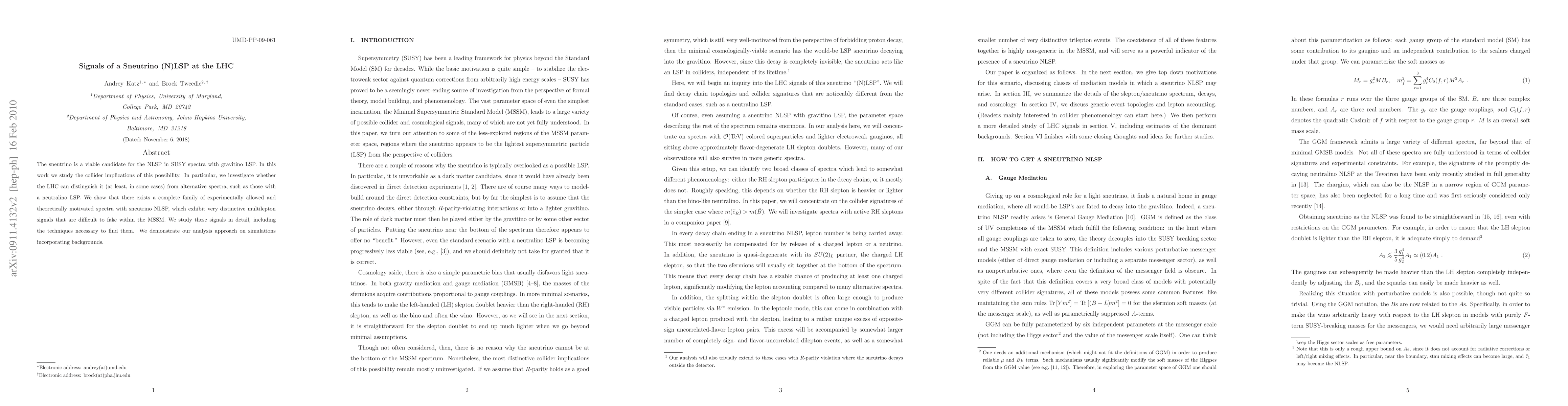 This paper explores the potential for the Large Hadron Collider (LHC) to identify a sneutrino as the next-to-lightest supersymmetric particle (NLSP) in scenarios where the gravitino is the lightest supersymmetric particle (LSP). It demonstrates distinctive multilepton signals that could differentiate sneutrino NLSP from other spectra, such as those with a neutralino LSP, and provides detailed analysis techniques and simulation studies to detect these signals.