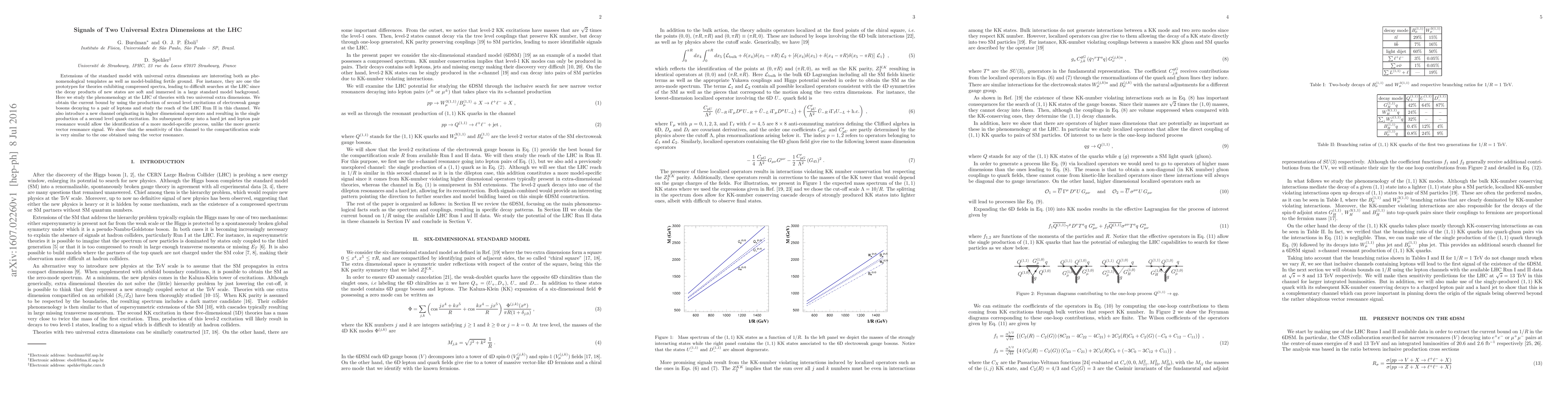 Extensions of the standard model with universal extra dimensions are interesting both as phenomenological templates as well as model-building fertile ground. For instance, they are one the prototypes for theories exhibiting compressed spectra, leading to difficult searches at the LHC since the decay products of new states are soft and immersed in a large standard model background. Here we study the phenomenology at the LHC of theories with two universal extra dimensions. We obtain the current bound by using the production of second level excitations of electroweak gauge bosons decaying to a pair of leptons and study the reach of the LHC Run~II in this channel. We also introduce a new channel originating in higher dimensional operators and resulting in the single production of a second level quark excitation. Its subsequent decay into a hard jet and lepton pair resonance would allow the identification of a more model-specific process, unlike the more generic vector resonance signal. We show that the sensitivity of this channel to the compactification scale is very similar to the one obtained using the vector resonance.
