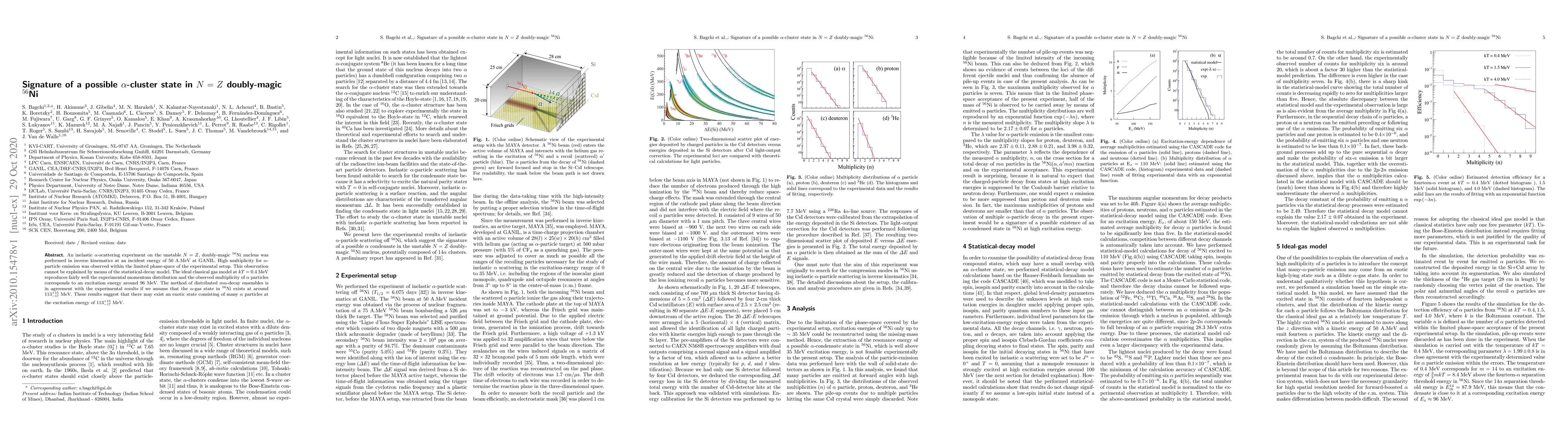 This study reports an inelastic $\alpha$-scattering experiment on $^{56}$Ni, revealing a high multiplicity of $\alpha$-particle emission suggesting an exotic $\alpha$-cluster state at an excitation energy of $113^{+15}_{-17}$ MeV, which cannot be explained by statistical decay models. The findings indicate a possible $\alpha$-cluster state in the doubly-magic nucleus.