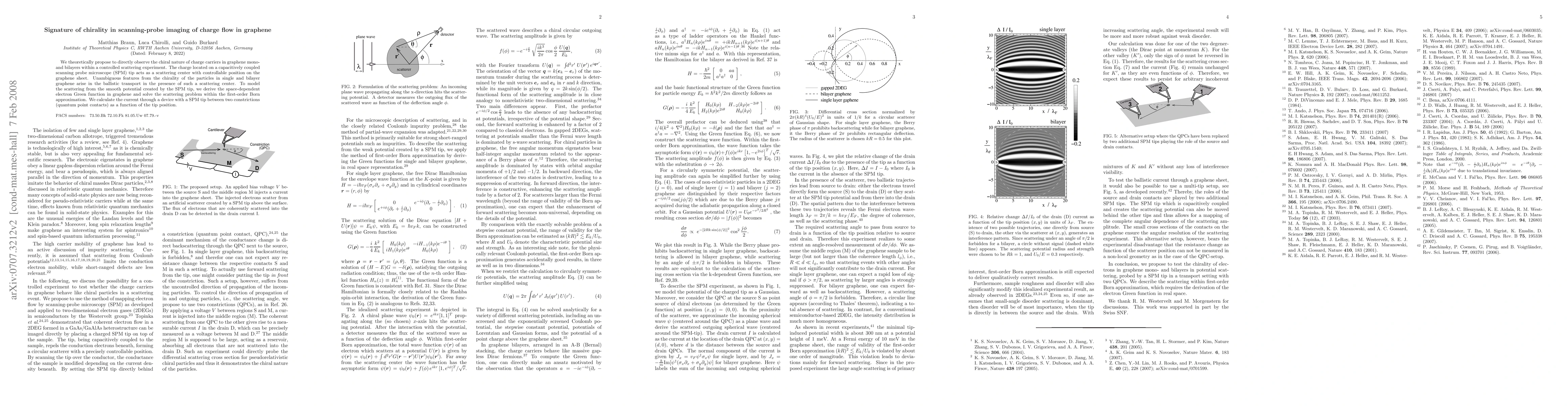 We theoretically propose to directly observe the chiral nature of charge carriers in graphene mono- and bilayers within a controlled scattering experiment. The charge located on a capacitively coupled scanning probe microscope (SPM) tip acts as a scattering center with controllable position on the graphene sheet. Unambiguous features from the chirality of the particles in single and bilayer graphene arise in the ballistic transport in the presence of such a scattering center. To theoretically model the scattering from the smooth potential created by the SPM tip, we develop the scattering formalism within first-order Born approximation. We calculate the current through a device with an SPM tip between two constrictions (quantum point contacts) as a function of the tip position.