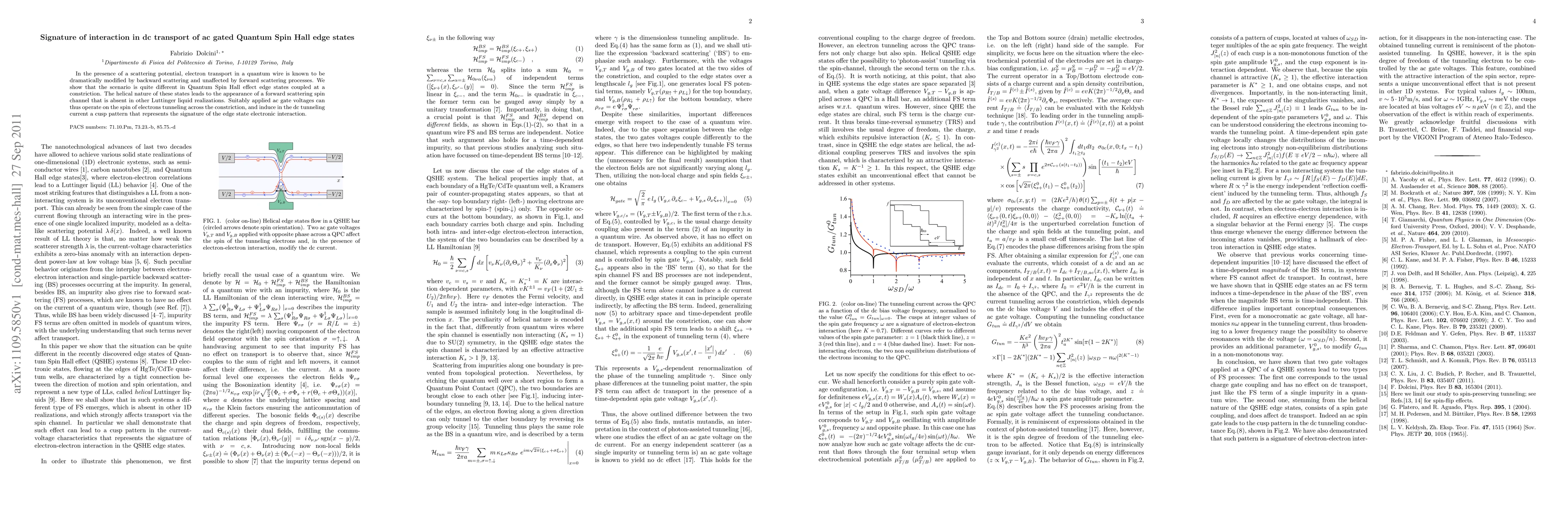 This paper demonstrates that in Quantum Spin Hall effect edge states, forward scattering can occur due to their helical nature, unlike typical Luttinger liquid systems. The study reveals that applied ac gate voltages can manipulate the spin of electrons, resulting in a distinctive cusp pattern in the dc tunneling current, signifying the interaction within these edge states.