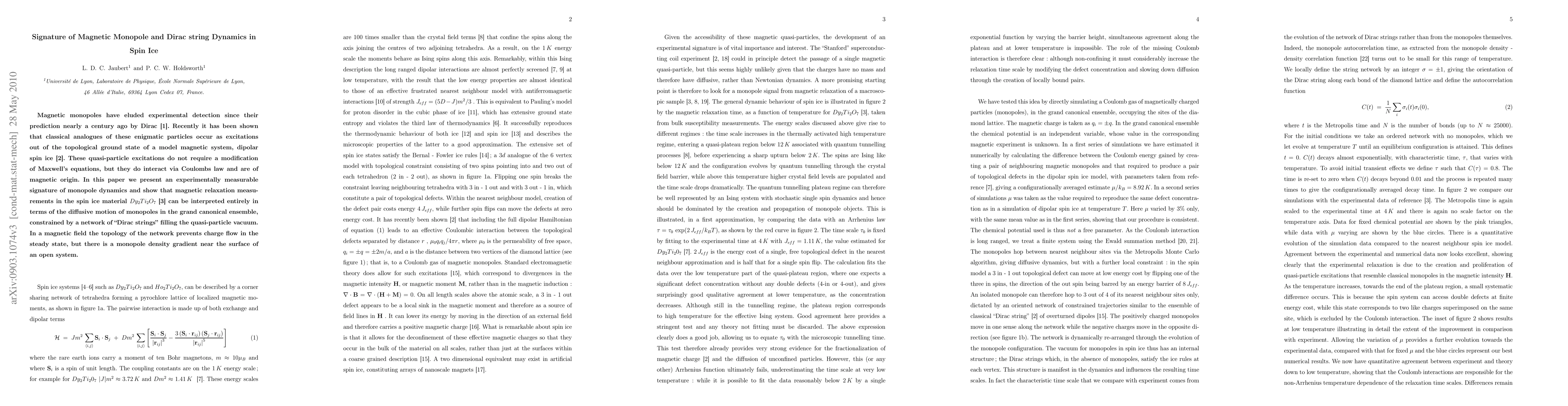 Researchers have identified a signature of magnetic monopole dynamics in spin ice materials, showing that quasi-particles can be explained by the diffusive motion of monopoles constrained by Dirac strings.
