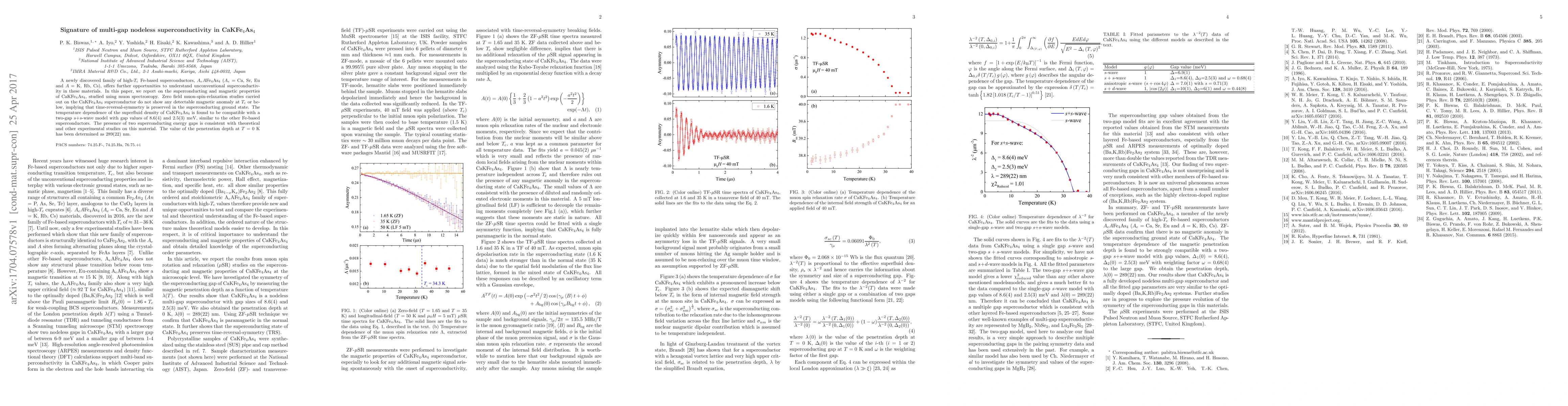 This study reveals that CaKFe4As4 exhibits multigap nodeless superconductivity, as indicated by zero-field muon spin relaxation showing no magnetic anomalies and a superfluid density compatible with a two-gap s+s-wave model. The superconducting gaps are determined to be 8.6(4) and 2.5(3) meV.