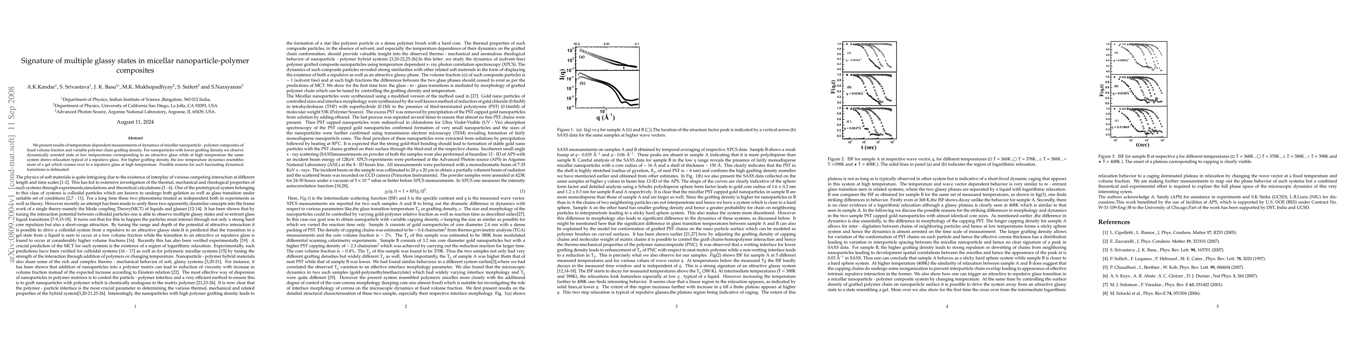 Researchers studied micellar nanoparticle-polymer composites to find that varying polymer chain grafting density affects the material's temperature-dependent behavior, leading to different glassy states at low temperatures.