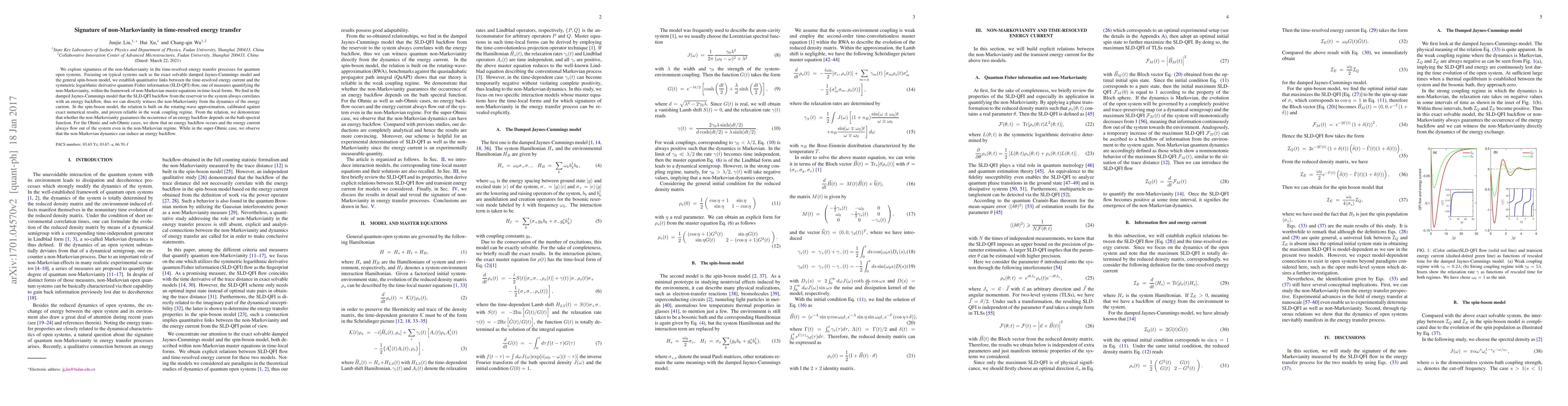 We explore signatures of the non-Markovianity in the time-resolved energy transfer processes for quantum open systems. Focusing on typical systems such as the exact solvable damped Jaynes-Cummings model and the general spin-boson model, we establish quantitative links between the time-resolved energy current and the symmetric logarithmic derivative quantum Fisher information (SLD-QFI) flow, one of measures quantifying the non-Markovianity, within the framework of non-Markovian master equations in time-local forms. From the relationships, we find in the damped Jaynes-Cummings model that the SLD-QFI backflow from the reservoir to the system always correlates with an energy backflow, thus we can directly witness the non-Markovianity from the dynamics of the energy current. In the spin-boson model, the relation is built on the rotating-wave approximation, calibrated against exact numerical results, and proven reliable in the weak coupling regime. We demonstrate that whether the non-Markovianity guarantees the occurrence of an energy backflow depends on the bath spectral function. For the Ohmic and sub-Ohmic cases, we show that no energy backflow occurs and the energy current always flow out of the system even in the non-Markovian regime. While in the super-Ohmic case, we observe that the non-Markovian dynamics can induce an energy backflow.