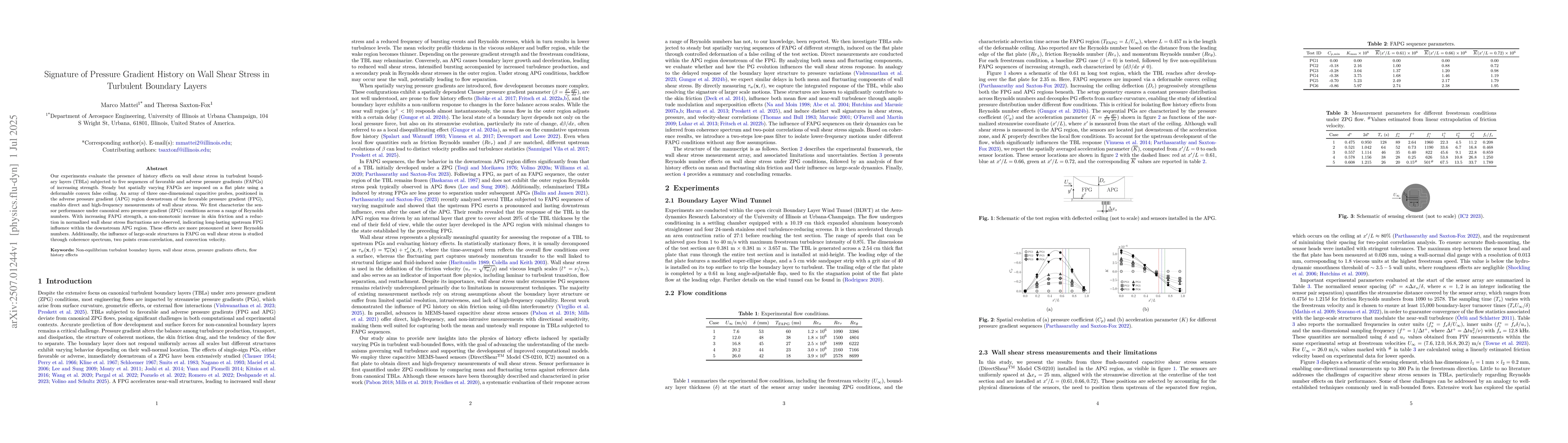 This study experiments with turbulent boundary layers under varying sequences of pressure gradients, finding that past pressure gradient history impacts wall shear stress, with stronger effects at lower Reynolds numbers. High-frequency measurements using capacitive probes reveal non-monotonic skin friction increases and reduced fluctuations in wall shear stress, indicating long-term upstream influence within downstream adverse pressure gradient regions.