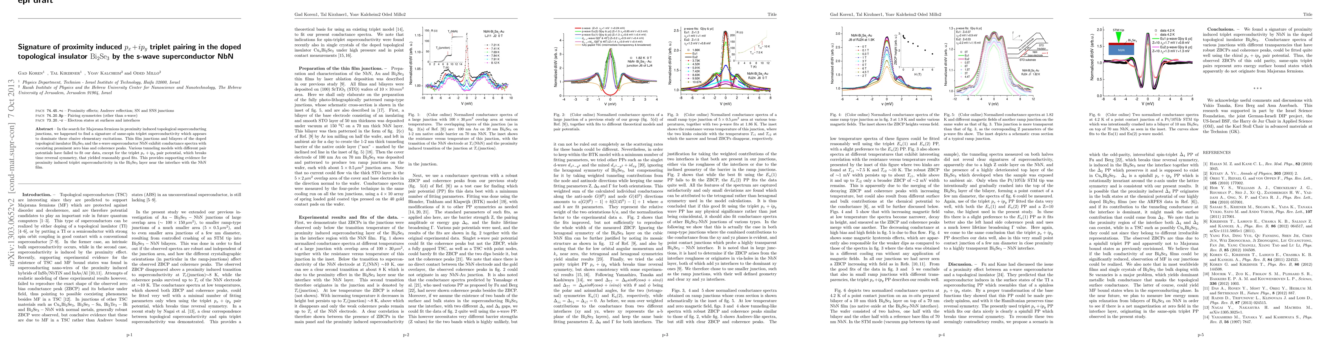 This study reveals that junctions combining doped topological insulator $\rm Bi_2Se_3$ and s-wave superconductor NbN exhibit triplet superconductivity, evidenced by conductance spectra with zero bias peaks, best explained by a $p_x+ip_y$ pair potential. This suggests proximity-induced triplet superconductivity in the $\rm Bi_2Se_3$ layer.