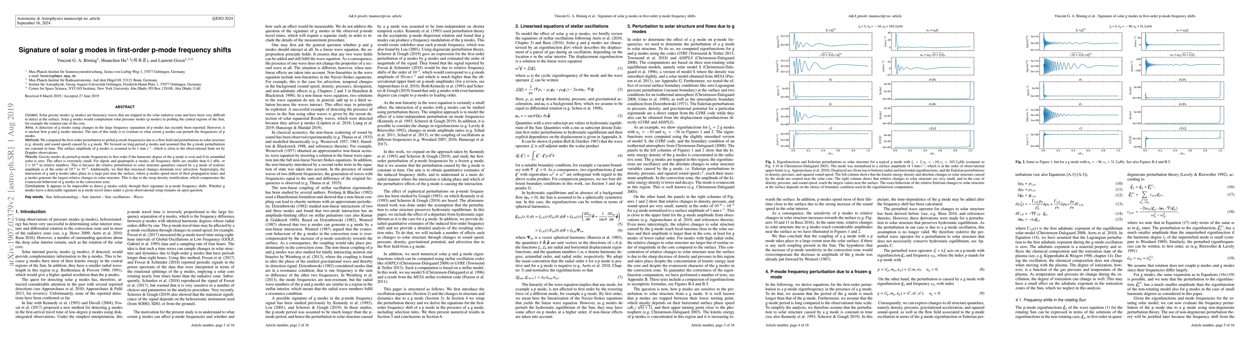 This study investigates the interaction between solar gravity modes (g modes) and pressure modes (p modes) by examining first-order frequency shifts in p modes due to g modes. The results show that g modes can perturb p-mode frequencies, but the effect is extremely small, making it impossible to detect g modes solely through these shifts.