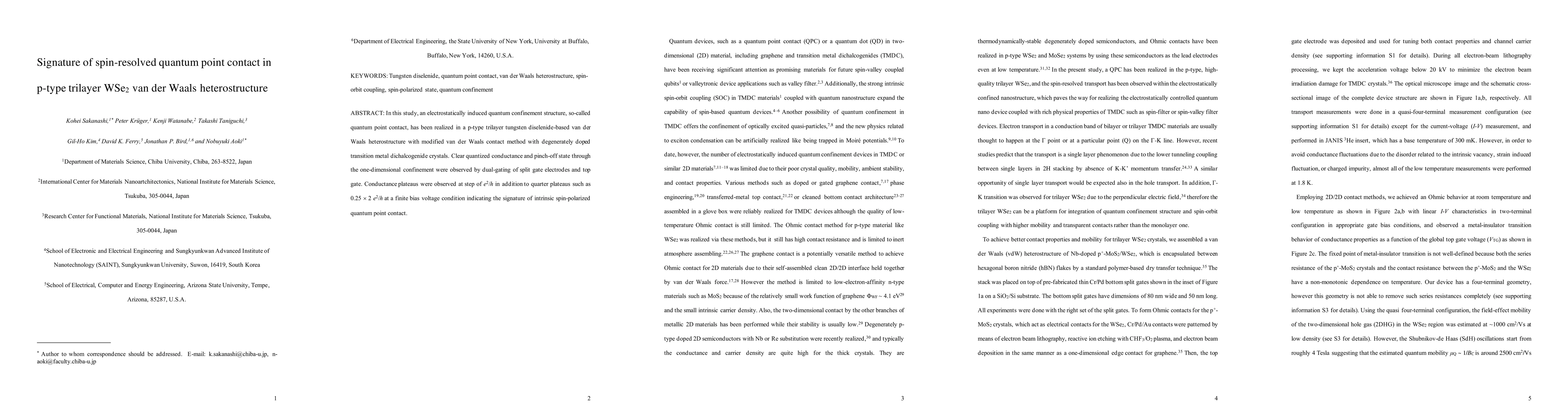 Researchers created a p-type trilayer WSe2 van der Waals heterostructure with a quantum point contact that exhibits clear quantized conductance and spin-polarization at zero and high magnetic fields.