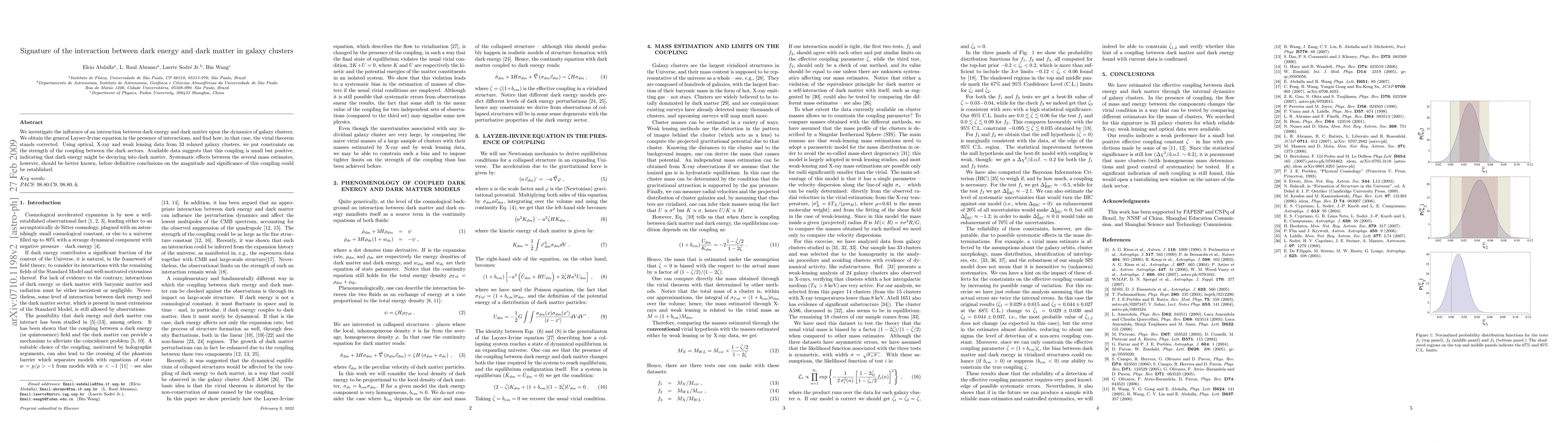 Summary: This study examines the effect of an interaction between dark energy and dark matter on galaxy cluster dynamics, deriving a modified virial theorem. Analysis of observational data from 33 clusters reveals a small but positive coupling, suggesting dark energy may decay into dark matter.