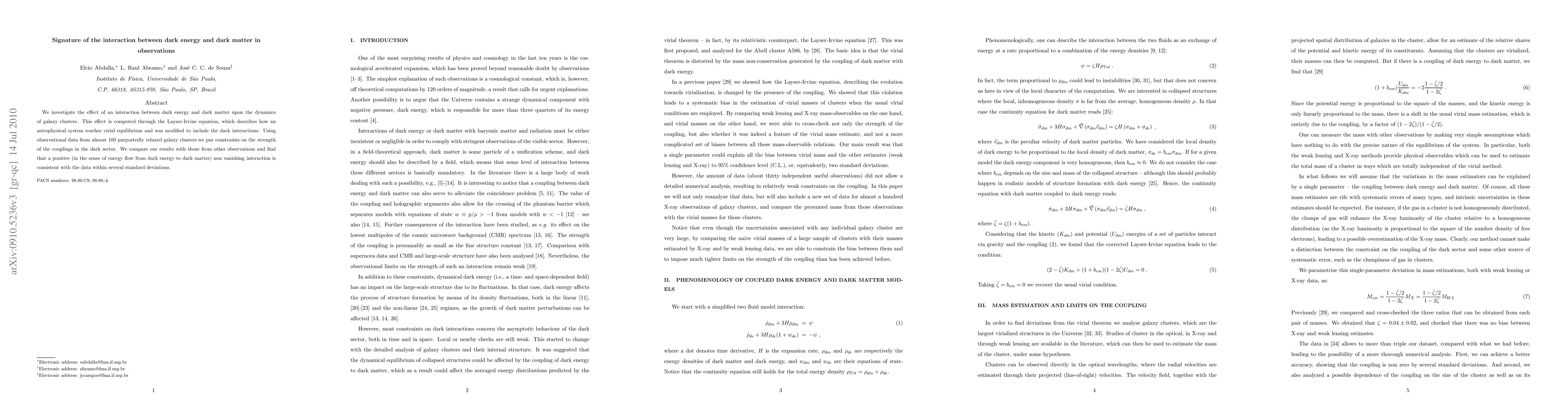 This paper investigates the interaction between dark energy and dark matter using galaxy cluster dynamics and observational data, finding a consistent positive interaction within observational uncertainties. The study modifies the Layser-Irvine equation to account for these interactions and compares results with other observational constraints.