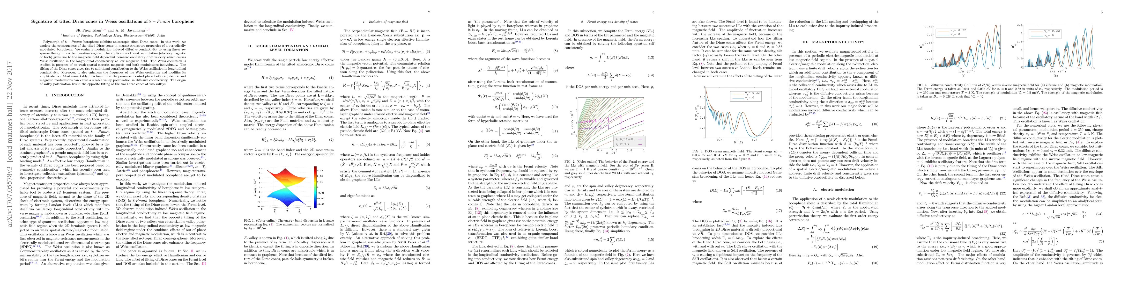 This study investigates the magnetotransport properties of 8-Pmmn borophene, revealing that its tilted Dirac cones lead to enhanced Weiss oscillations in longitudinal conductivity due to modulation-induced diffusive conductivity, and cause valley polarization when both electric and magnetic modulations are applied out-of-phase.