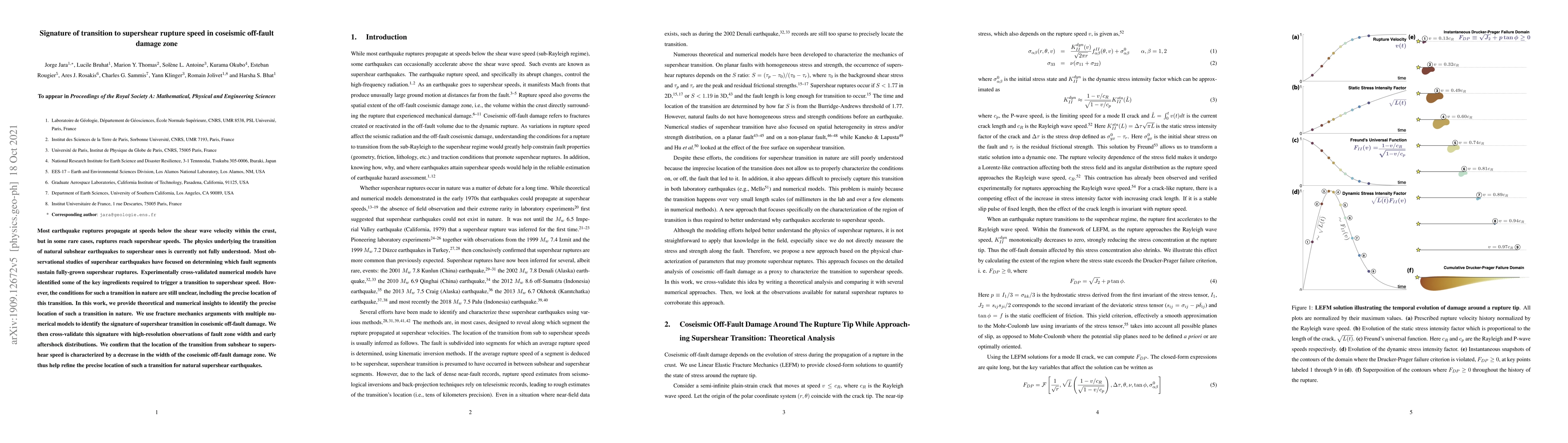 This paper investigates the transition from subshear to supershear rupture speeds in earthquakes, identifying a decrease in the width of the coseismic off-fault damage zone as a signature of this transition. The study combines theoretical insights and numerical models with high-resolution observations to refine the precise location of this transition in natural supershear earthquakes.