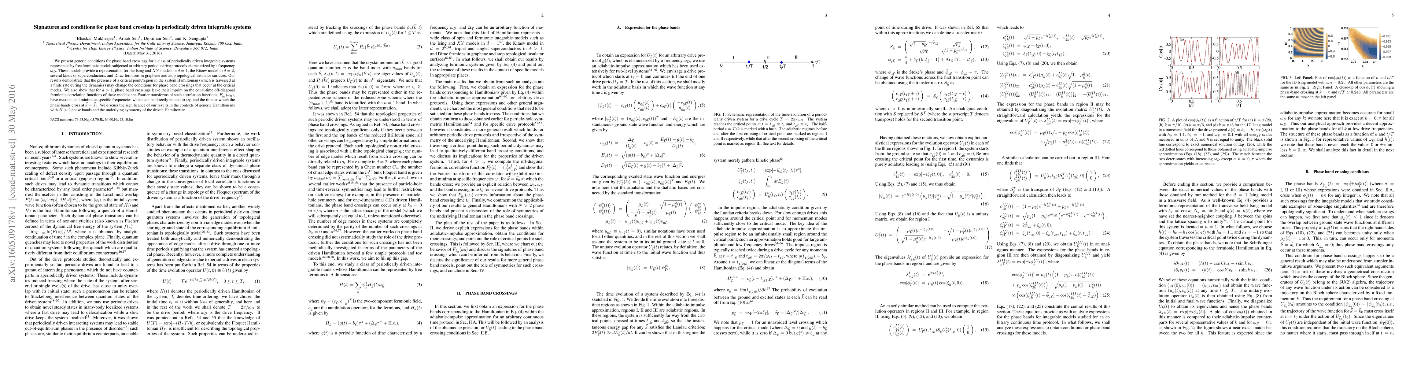 Researchers found conditions for phase band crossings in periodically driven integrable systems, which can affect equal-time correlation functions and provide insight into generic Hamiltonians with multiple phase bands.