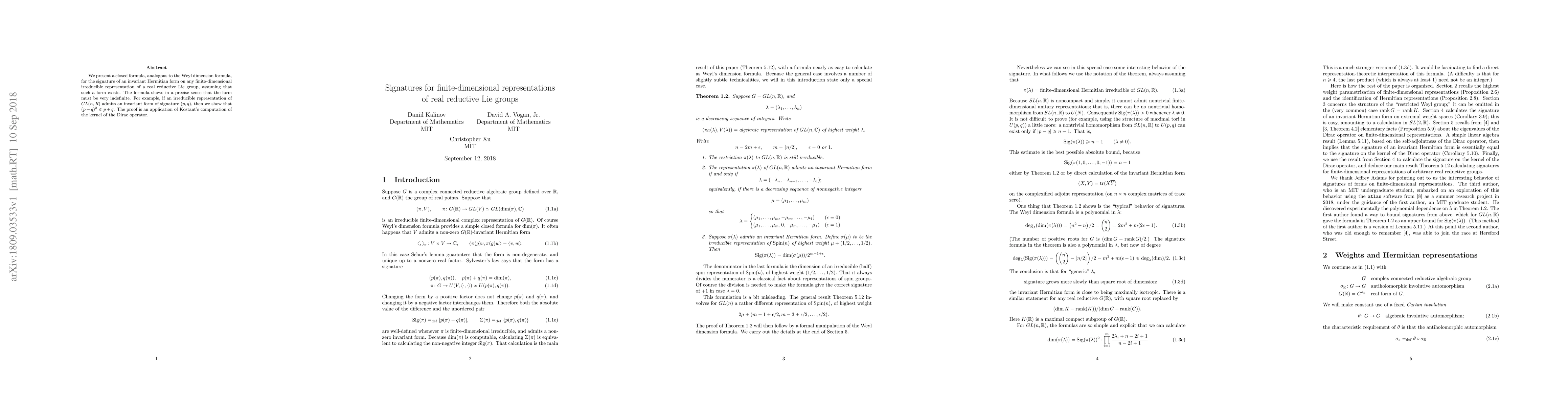 We present a closed formula, analogous to the Weyl dimension formula, for the signature of an invariant Hermitian form on any finite-dimensional irreducible representation of a real reductive Lie group, assuming that such a form exists. The formula shows in a precise sense that the form must be very indefinite. For example, if an irreducible representation of $GL(n,R)$ admits an invariant form of signature $(p,q)$, then we show that $(p-q)^2 \le p+q$. The proof is an application of Kostant's computation of the kernel of the Dirac operator.