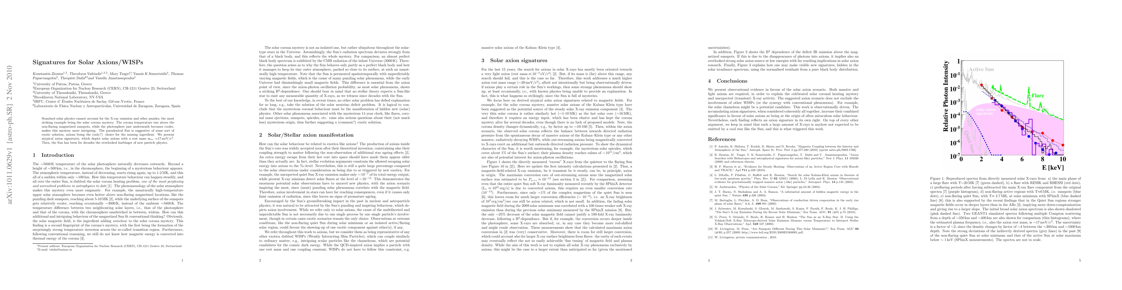 Standard solar physics cannot account for the X-ray emission and other puzzles, the most striking example being the solar corona mystery. The corona temperature rise above the non-flaring magnetized sunspots, while the photosphere just underneath becomes cooler, makes this mystery more intriguing. The paradoxical Sun is suggestive of some sort of exotic solution, axions being the (only?) choice for the missing ingredient. We present atypical axion signatures, which depict solar axions with a rest mass max ~17 meV/c2. Then, the Sun has been for decades the overlooked harbinger of new particle physics.