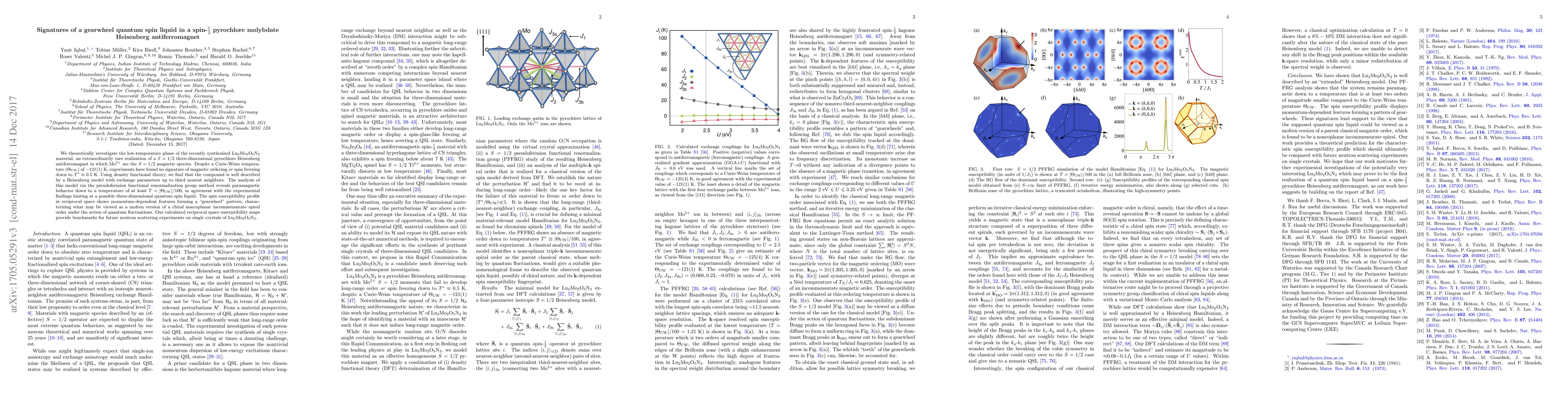We theoretically investigate the low-temperature phase of the recently synthesized Lu$_2$Mo$_2$O$_5$N$_2$ material, an extraordinarily rare realization of a $S=1/2$ three-dimensional pyrochlore Heisenberg antiferromagnet in which Mo$^{5+}$ are the $S=1/2$ magnetic species. Despite a Curie-Weiss temperature ($\Theta_{\rm CW}$) of $-121(1)$ K, experiments have found no signature of magnetic ordering $or$ spin freezing down to $T^*\approx0.5$ K. Using density functional theory, we find that the compound is well described by a Heisenberg model with exchange parameters up to third nearest neighbors. The analysis of this model via the pseudofermion functional renormalization group method reveals paramagnetic behavior down to a temperature of at least $T=|\Theta_{\rm CW}|/100$, in agreement with the experimental findings hinting at a possible three-dimensional quantum spin liquid. The spin susceptibility profile in reciprocal space shows momentum-dependent features forming a "gearwheel" pattern, characterizing what may be viewed as a molten version of a chiral noncoplanar incommensurate spiral order under the action of quantum fluctuations. Our calculated reciprocal space susceptibility maps provide benchmarks for future neutron scattering experiments on single crystals of Lu$_2$Mo$_2$O$_5$N$_2$.