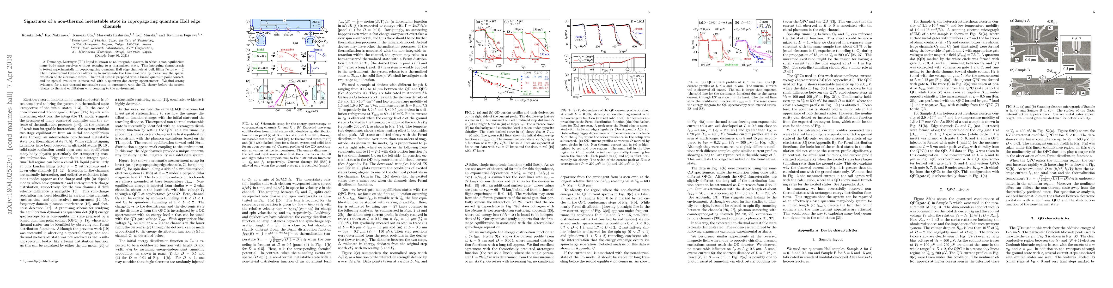 This research experimentally investigates signatures of a non-thermal metastable state in copropagating quantum Hall edge channels, confirming the predictions of Tomonaga-Luttinger liquid theory. The study reveals the time evolution of electronic states through spatial measurements, showing evidence of a metastable state before thermalization.