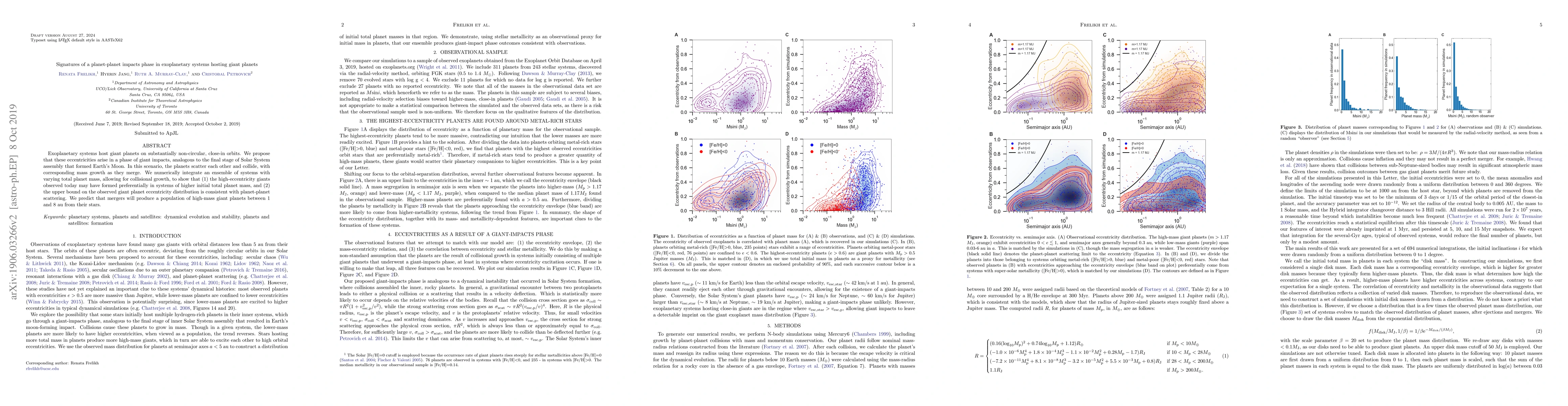 This research proposes that the eccentric orbits of giant exoplanets result from a phase of planet-planet impacts during their formation, similar to the Moon's creation in the Solar System. Numerical simulations suggest that high-eccentricity giants form in systems with greater initial planet mass, and predict a population of high-mass giant planets between 1 and 8 au.