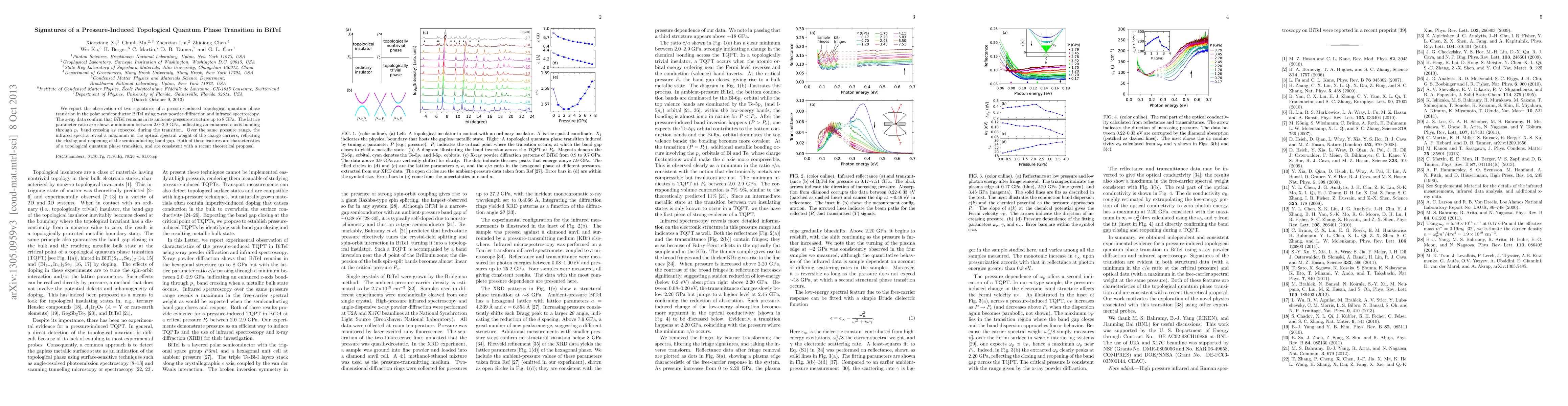 This study observes two signatures of a pressure-induced topological quantum phase transition in BiTeI: a minimum in the c/a lattice parameter ratio and a peak in optical spectral weight, both occurring between 2.0-2.9 GPa, as evidenced by x-ray diffraction and infrared spectroscopy. These findings align with theoretical predictions of a topological transition.