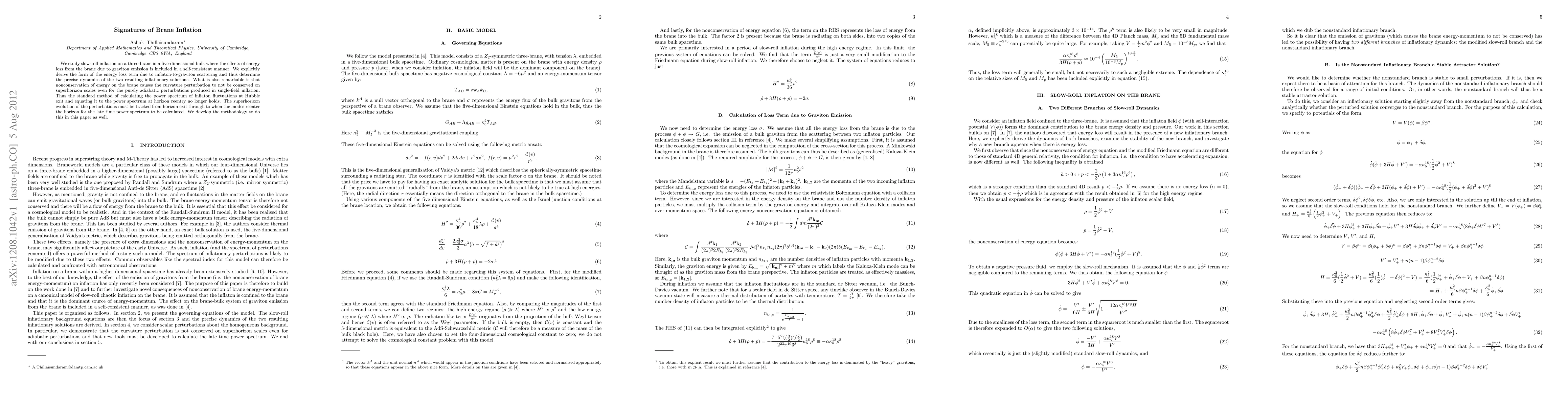 This paper examines brane inflation with energy loss from the brane via graviton emission, deriving the energy loss term and its impact on inflation dynamics. It reveals that energy nonconservation on the brane causes curvature perturbations to evolve superhorizon scales, invalidating standard power spectrum calculation methods. The paper introduces methodology to accurately track perturbation evolution from horizon exit to reentry for precise late-time power spectrum calculation.