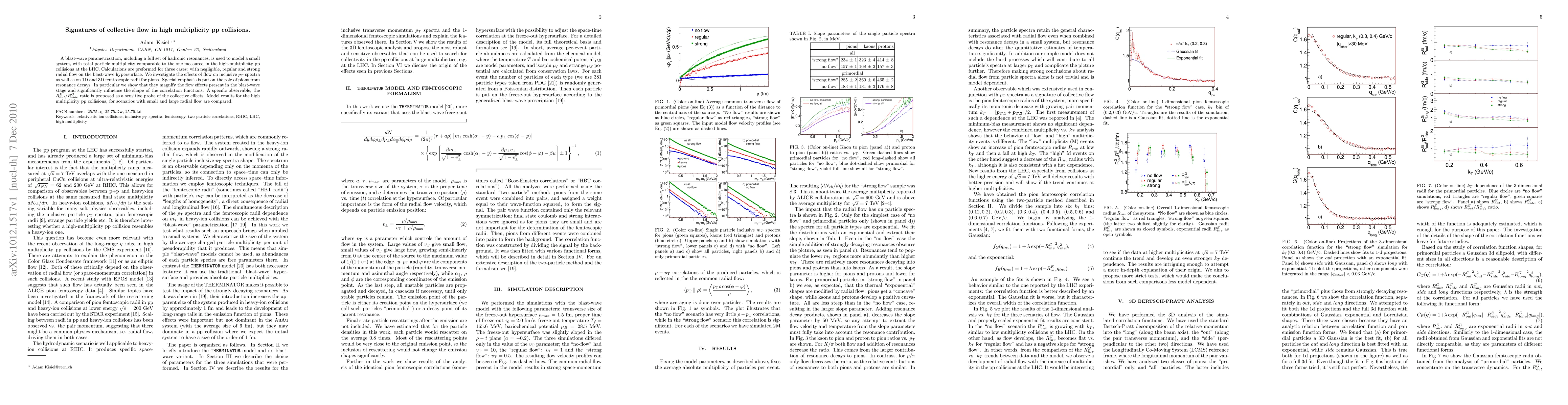 A blast-wave parametrization, including a full set of hadronic resonances, is used to model a small system, with total particle multiplicity comparable to the one measured in the high-multiplicity pp collisions at the LHC. Calculations are preformed for three cases: with negligible, regular and strong radial flow on the blast-wave hypersurface. We investigate the effects of flow on inclusive p_T spectra as well as on 1D and 3D femtoscopic radii for pions. Special emphasis is put on the role of pions from resonance decays. In particular we show that they magnify the flow effects present in the blast-wave stage and significantly influence the shape of the correlation functions. A specific observable, the R^E_out/R^G_side ratio is proposed as a sensitive probe of the collective effects. Model results for the high multiplicity pp collisions, for scenarios with small and large radial flow are compared.