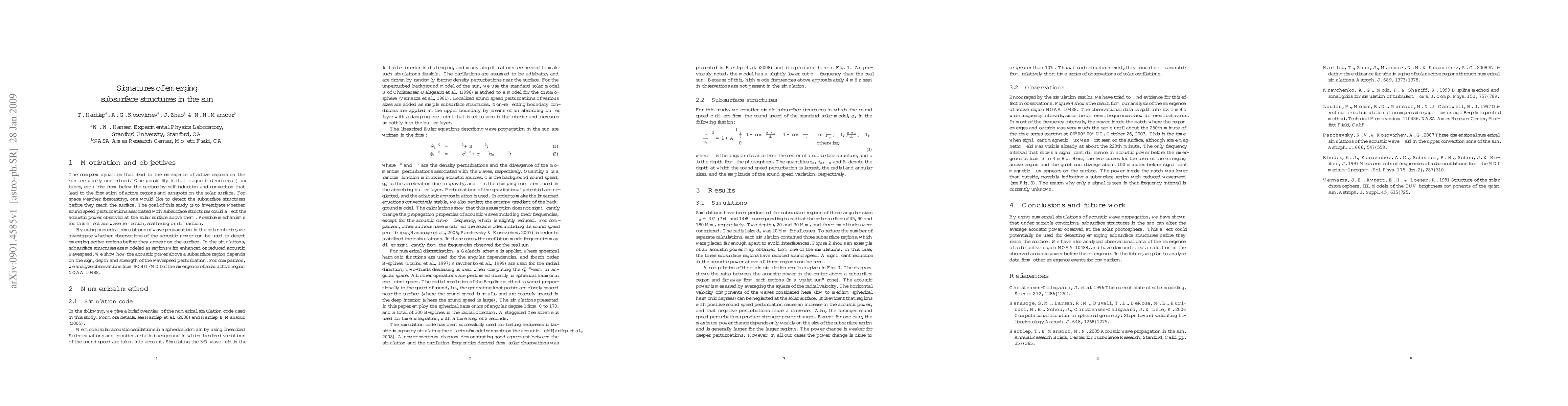 The complex dynamics that lead to the emergence of active regions on the sun are poorly understood. One possibility is that magnetic structures (flux tubes, etc.) rise from below the surface by self induction and convection that lead to the formation of active regions and sunspots on the solar surface. For space weather forecasting, one would like to detect the subsurface structures before they reach the surface. The goal of this study is to investigate whether sound speed perturbations associated with subsurface structures could affect the acoustic power observed at the solar surface above them. Possible mechanisms for this effect are wave reflection, scattering or diffraction. By using numerical simulations of wave propagation in the solar interior, we investigate whether observations of the acoustic power can be used to detect emerging active regions before they appear on the surface. In the simulations, subsurface structures are modeled as regions with enhanced or reduced acoustic wavespeed. We show how the acoustic power above a subsurface region depends on the sign, depth and strength of the wavespeed perturbation. For comparison, we analyze observations from SOHO/MDI of the emergence of solar active region NOAA 10488.