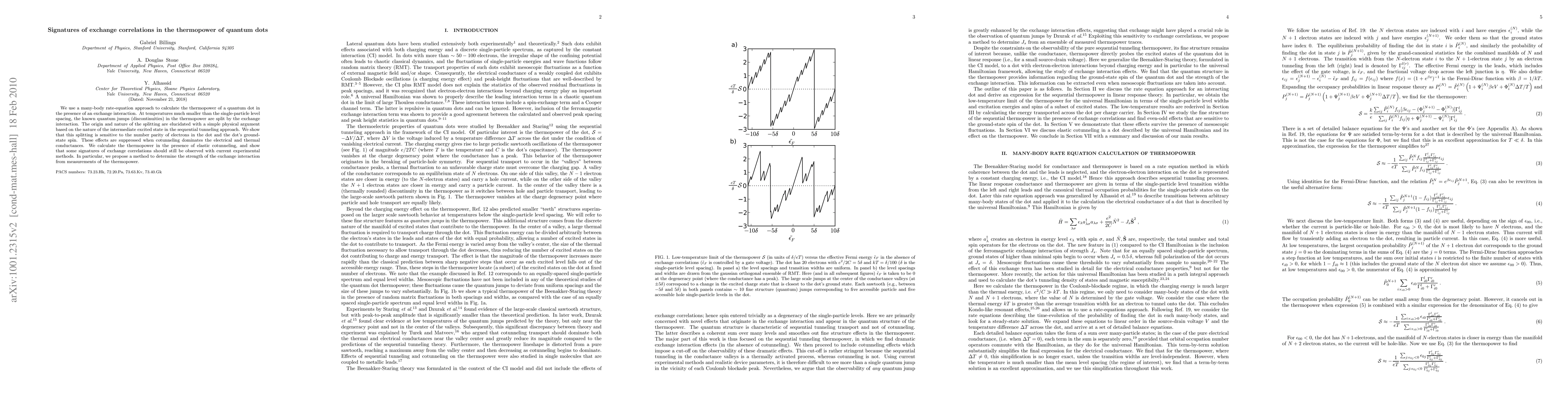 We use a many-body rate-equation approach to calculate the thermopower of a quantum dot in the presence of an exchange interaction. At temperatures much smaller than the single-particle level spacing, the known quantum jumps (discontinuities) in the thermopower are split by the exchange interaction. The origin and nature of the splitting are elucidated with a simple physical argument based on the nature of the intermediate excited state in the sequential tunneling approach. We show that this splitting is sensitive to the number parity of electrons in the dot and the dot's ground-state spin. These effects are suppressed when cotunneling dominates the electrical and thermal conductances. We calculate the thermopower in the presence of elastic cotunneling, and show that some signatures of exchange correlations should still be observed with current experimental methods. In particular, we propose a method to determine the strength of the exchange interaction from measurements of the thermopower.