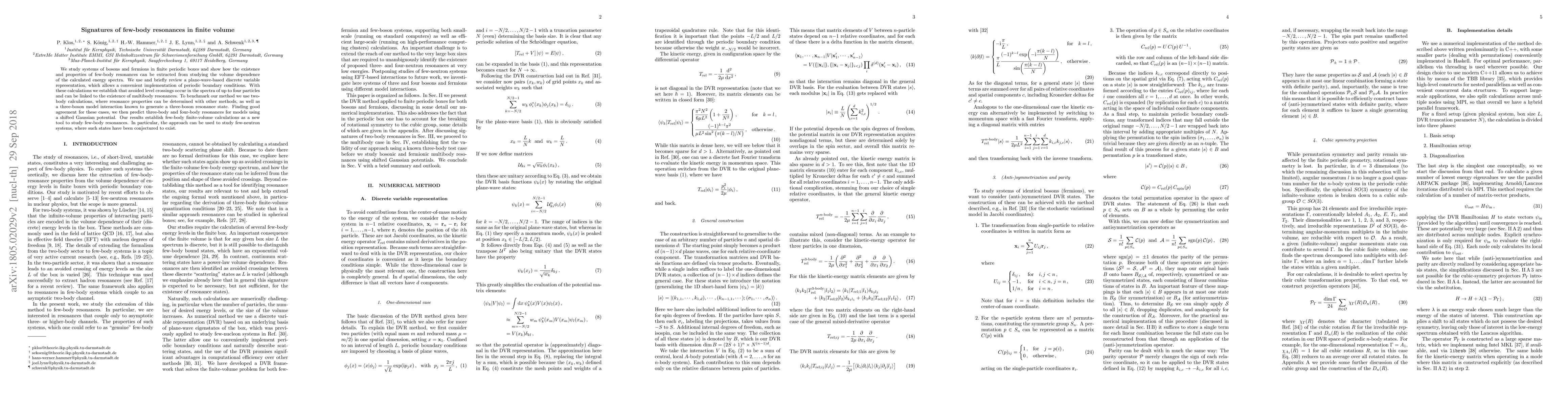 We study systems of bosons and fermions in finite periodic boxes and show how the existence and properties of few-body resonances can be extracted from studying the volume dependence of the calculated energy spectra. Using a plane-wave-based discrete variable representation to conveniently implement periodic boundary conditions, we establish that avoided level crossings occur in the spectra of up to four particles and can be linked to the existence of multi-body resonances. To benchmark our method we use two-body calculations, where resonance properties can be determined with other methods, as well as a three-boson model interaction known to generate a three-boson resonance state. Finding good agreement for these cases, we then predict three-body and four-body resonances for models using a shifted Gaussian potential. Our results establish few-body finite-volume calculations as a new tool to study few-body resonances. In particular, the approach can be used to study few-neutron systems, where such states have been conjectured to exist.
