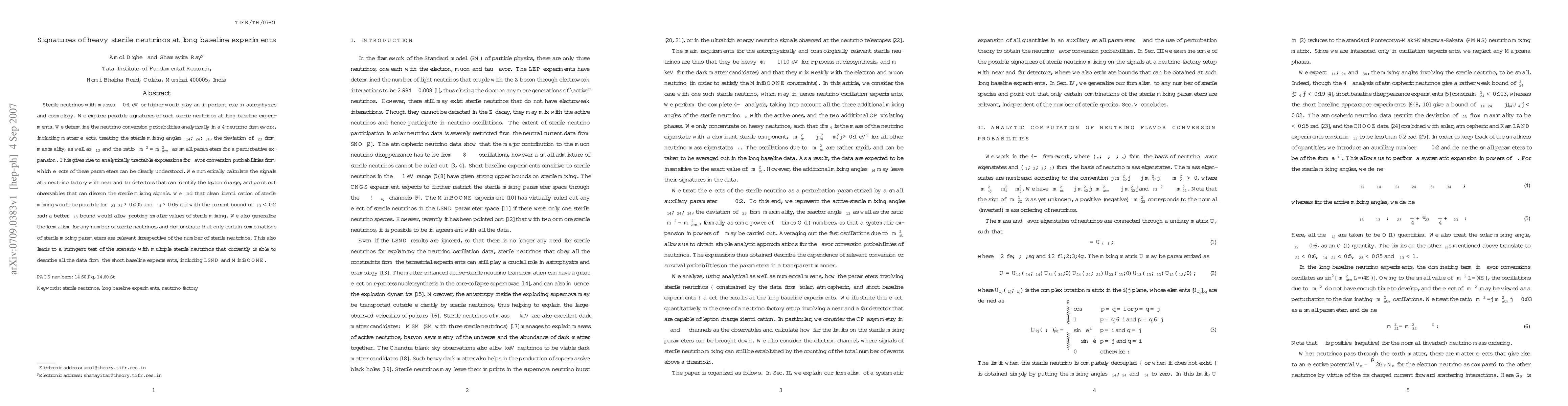 This paper investigates signatures of heavy sterile neutrinos at long baseline neutrino experiments, deriving analytical expressions for neutrino conversion probabilities in a 4-neutrino framework. It identifies specific observables that can discern sterile mixing signals, finding that current bounds allow for the detection of mixing with $\theta_{24}\theta_{34} \gsim 0.005$ and $\theta_{14} \gsim 0.06$ rad.