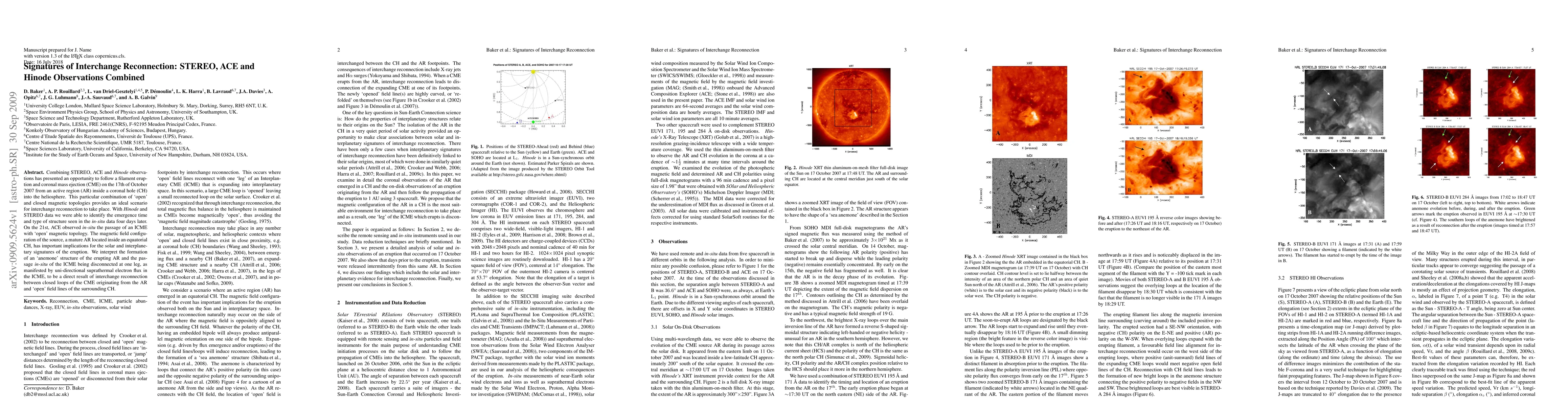 Combining STEREO, ACE and Hinode observations has presented an opportunity to follow a filament eruption and coronal mass ejection (CME) on the 17th of October 2007 from an active region (AR) inside a coronal hole (CH) into the heliosphere. This particular combination of `open' and closed magnetic topologies provides an ideal scenario for interchange reconnection to take place. With Hinode and STEREO data we were able to identify the emergence time and type of structure seen in the in-situ data four days later. On the 21st, ACE observed in-situ the passage of an ICME with `open' magnetic topology. The magnetic field configuration of the source, a mature AR located inside an equatorial CH, has important implications for the solar and interplanetary signatures of the eruption. We interpret the formation of an `anemone' structure of the erupting AR and the passage in-situ of the ICME being disconnected at one leg, as manifested by uni-directional suprathermal electron flux in the ICME, to be a direct result of interchange reconnection between closed loops of the CME originating from the AR and `open' field lines of the surrounding CH.