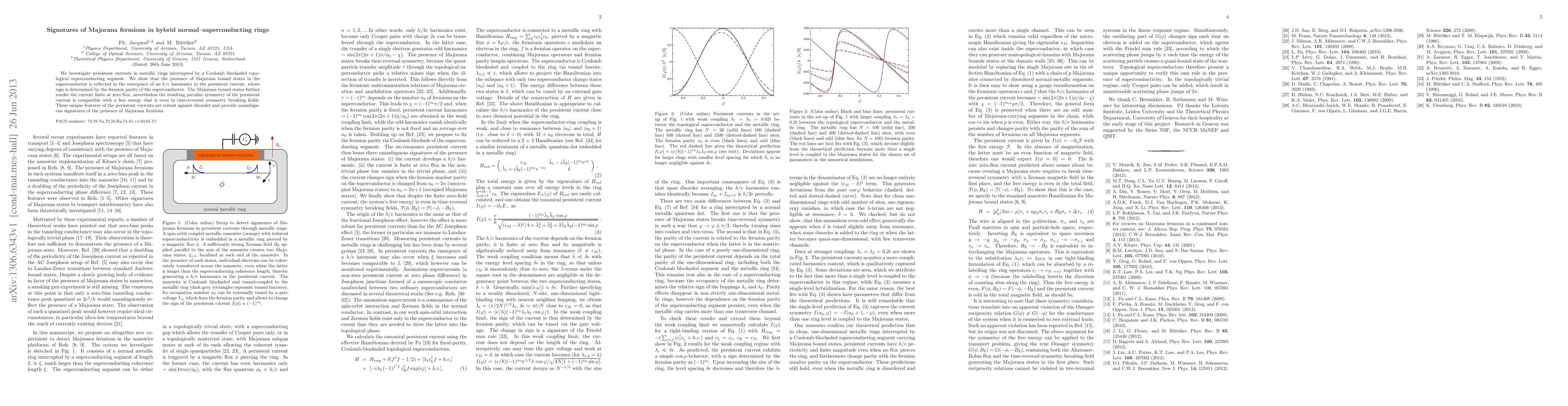 We investigate persistent currents in metallic rings interrupted by a Coulomb blockaded topological superconducting segment. We show that the presence of Majorana bound states in the superconductor is reflected in the emergence of an h/e harmonics in the persistent current, whose sign is determined by the fermion parity of the superconductor. The Majorana bound states further render the current finite at zero flux, nevertheless the resulting peculiar symmetry of the persistent current is compatible with a free energy that is even in time-reversal symmetry breaking fields. These unique features of the persistent currents are robust against disorder and provide unambiguous signatures of the presence of Majorana fermions.