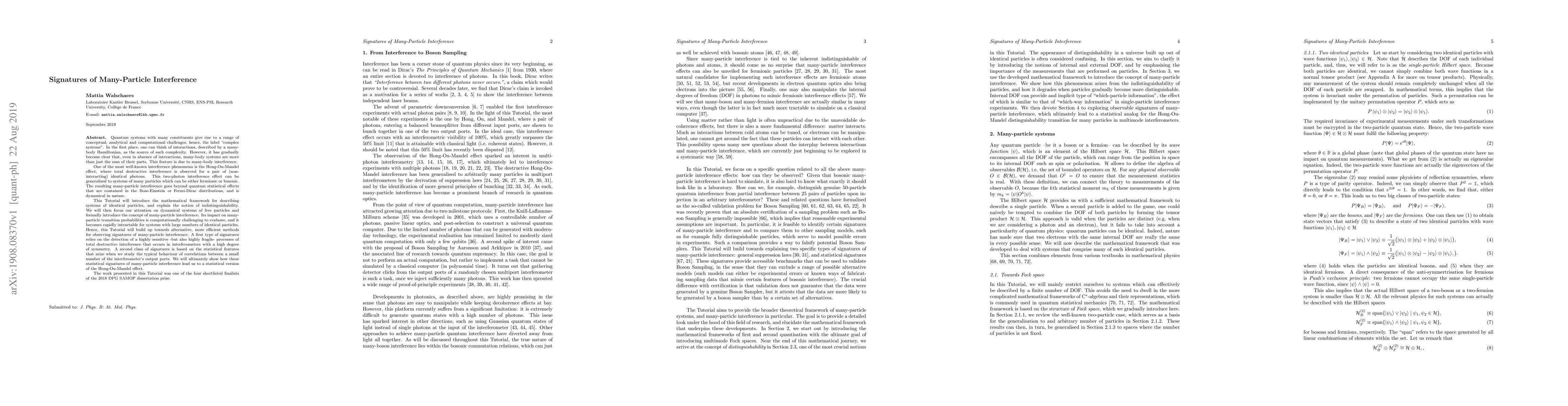 This tutorial explores signatures of many-particle interference in systems with identical particles, proposing two methods to observe statistical features that arise from these systems.