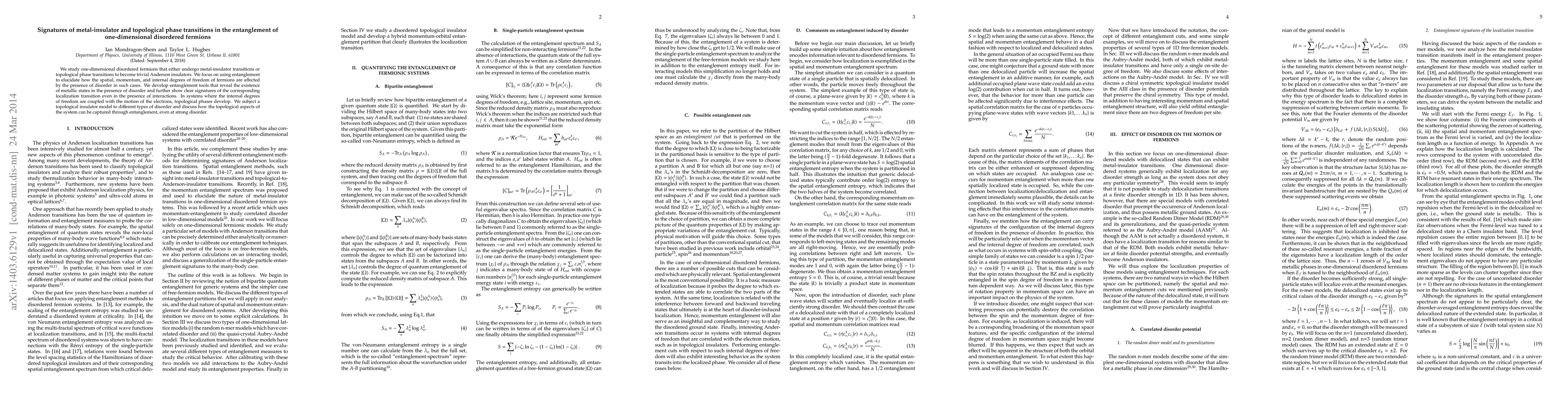 This research investigates one-dimensional disordered fermionic systems experiencing metal-insulator and topological phase transitions, employing entanglement measures to discern how disorder influences spatial, momentum, and internal degrees of freedom. The study reveals clear entanglement signatures of metallic states and localization transitions, and demonstrates how topological properties can be captured through entanglement despite strong disorder.