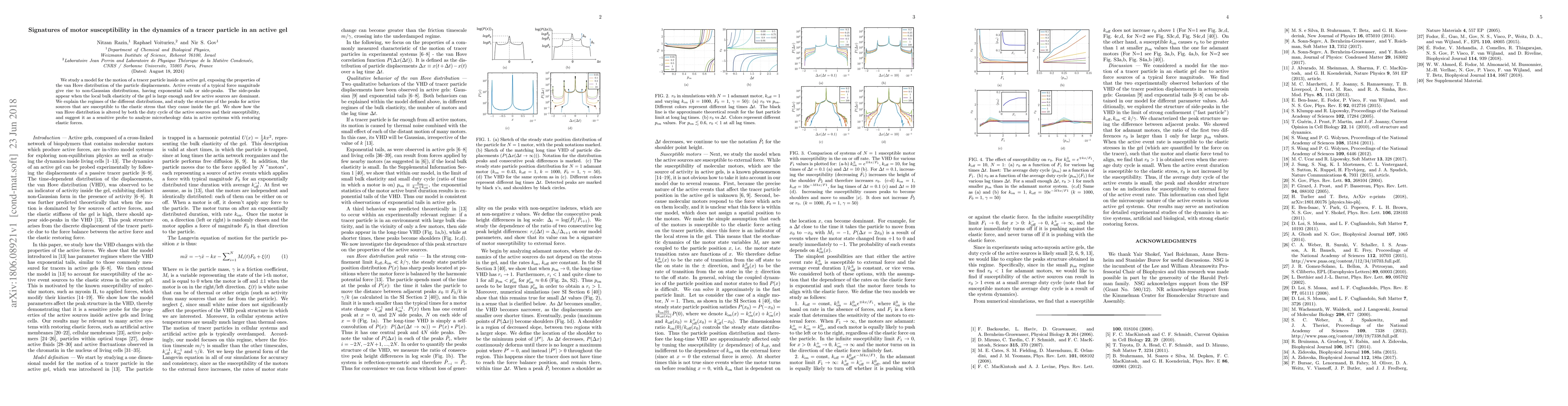 We study a model for the motion of a tracer particle inside an active gel, exposing the properties of the van Hove distribution of the particle displacements. Active events of a typical force magnitude give rise to non-Gaussian distributions, having exponential tails or side-peaks. The side-peaks appear when the local bulk elasticity of the gel is large enough and few active sources are dominant. We explain the regimes of the different distributions, and study the structure of the peaks for active sources that are susceptible to the elastic stress that they cause inside the gel. We show how the van Hove distribution is altered by both the duty cycle of the active sources and their susceptibility, and suggest it as a sensitive probe to analyze microrheology data in active systems with restoring elastic forces.