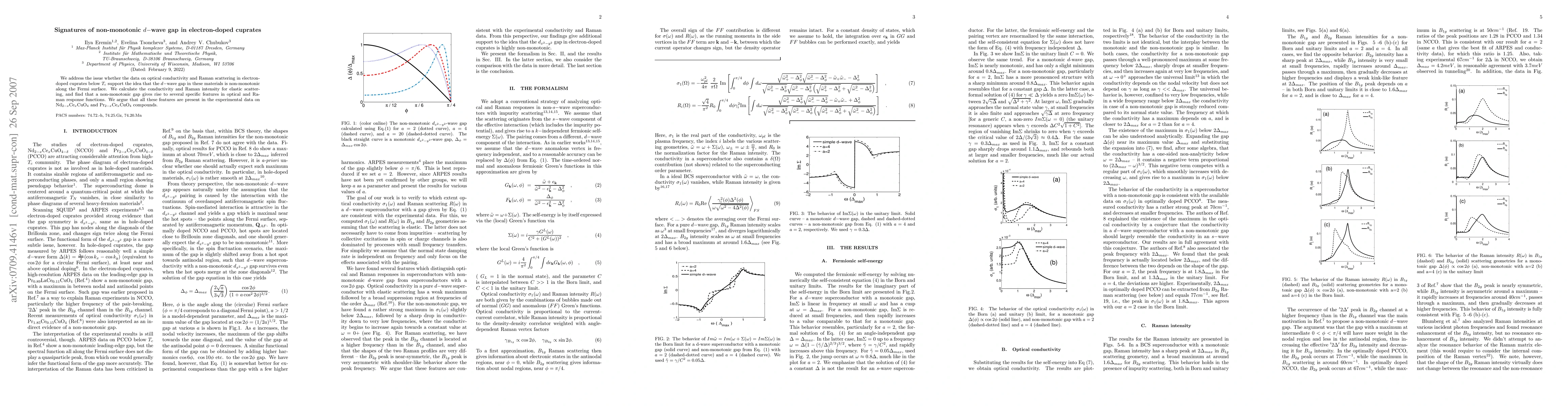 We address the issue whether the data on optical conductivity and Raman scattering in electron-doped cuprates below $T_c$ support the idea that the $d-$wave gap in these materials is non-monotonic along the Fermi surface. We calculate the conductivity and Raman intensity for elastic scattering, and find that a non-monotonic gap gives rise to several specific features in optical and Raman response functions. We argue that all these features are present in the experimental data on Nd$_{2-x}$Ce$_{x}$CuO$_4$ and Pr$_{2-x}$Ce$_{x}$CuO$_4$ compounds.