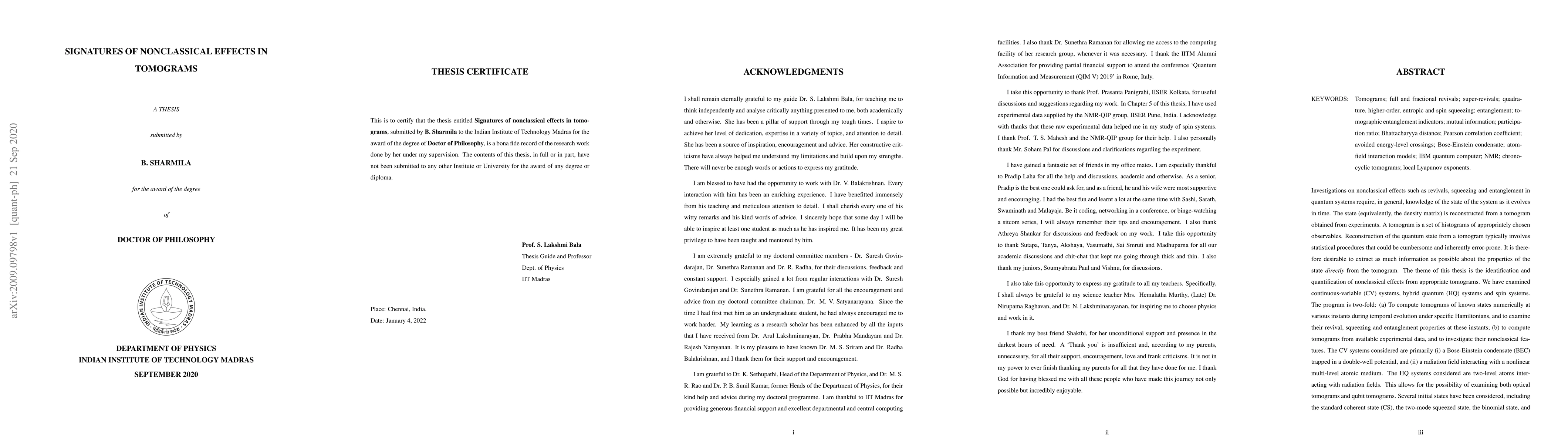 The thesis showcases the importance of tomograms in quantifying nonclassical effects such as wavepacket revivals, squeezing, and quantum entanglement in continuous-variable, hybrid quantum, and qubit systems. This approach avoids error-prone statistical methods used in state reconstruction procedures. The performance of many bipartite entanglement indicators obtained directly from tomograms is examined both in the case of known quantum states and experimental data reported in the literature.