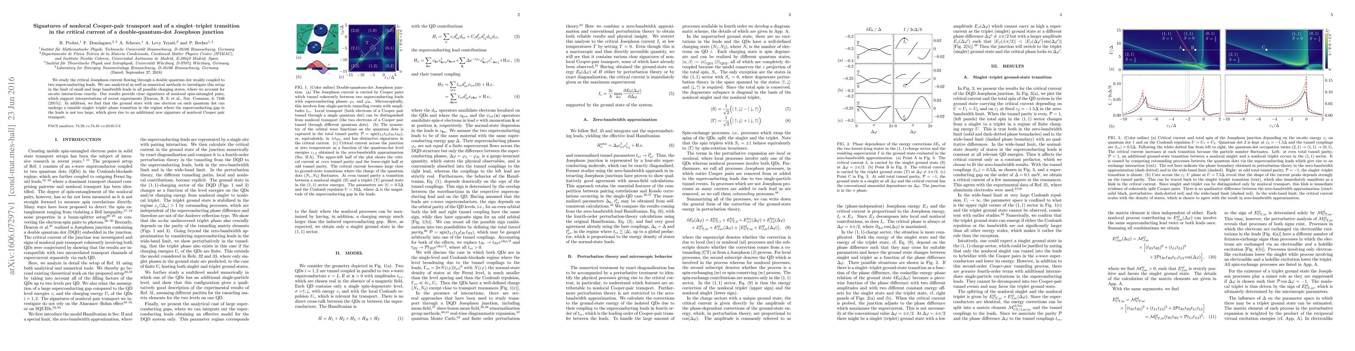 We study the critical Josephson current flowing through a double quantum dot weakly coupled to two superconducting leads. We use analytical as well as numerical methods to investigate this setup in the limit of small and large bandwidth leads in all possible charging states, where we account for on-site interactions exactly. Our results provide clear signatures of nonlocal spin-entangled pairs, which support interpretations of recent experiments [Deacon, R. S. et al., Nat. Commun. 6, 7446 (2015)]. In addition, we find that the ground state with one electron on each quantum dot can undergo a tunable singlet-triplet phase transition in the regime where the superconducting gap in the leads is not too large, which gives rise to an additional new signature of nonlocal Cooper pair transport.