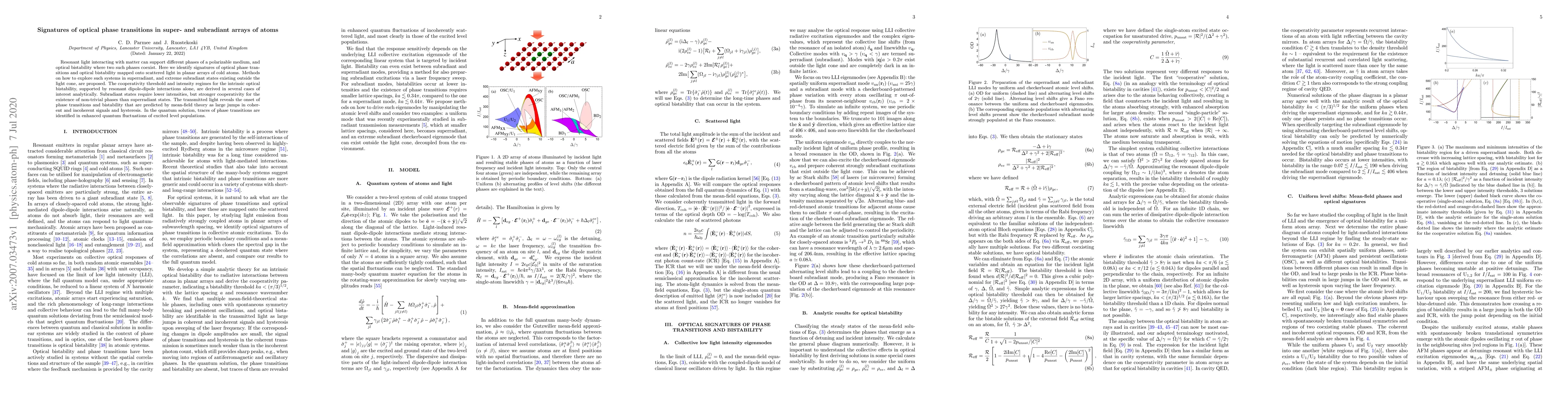 Researchers identified signatures of optical phase transitions in super- and subradiant arrays of atoms, using scattered light to map these transitions. The study proposed methods for exploring such systems and derived conditions for intrinsic optical bistability.